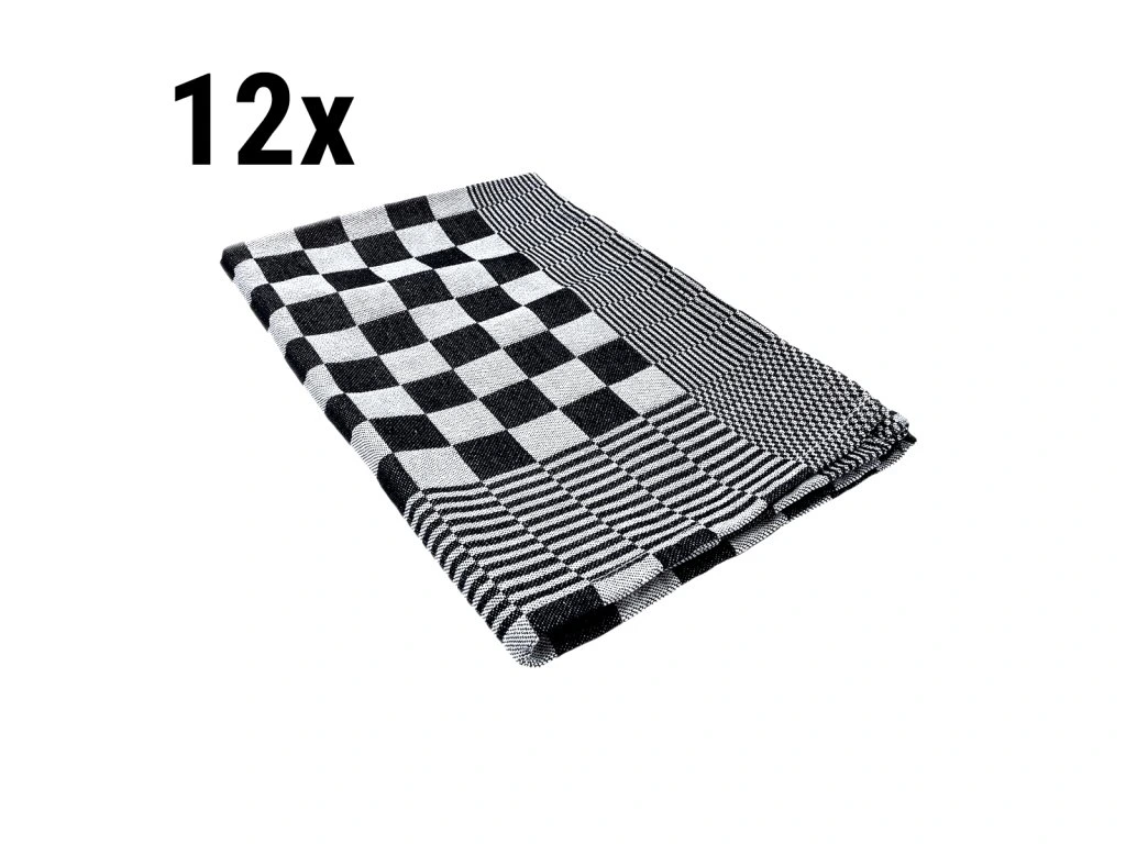 (12 szt.) Ściereczka bawełniana - 65 x 65 cm - czarno-biała kratka
