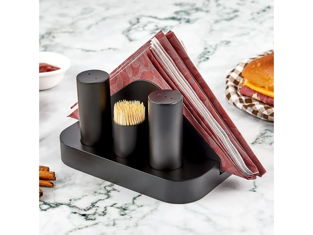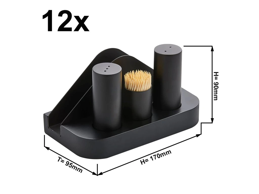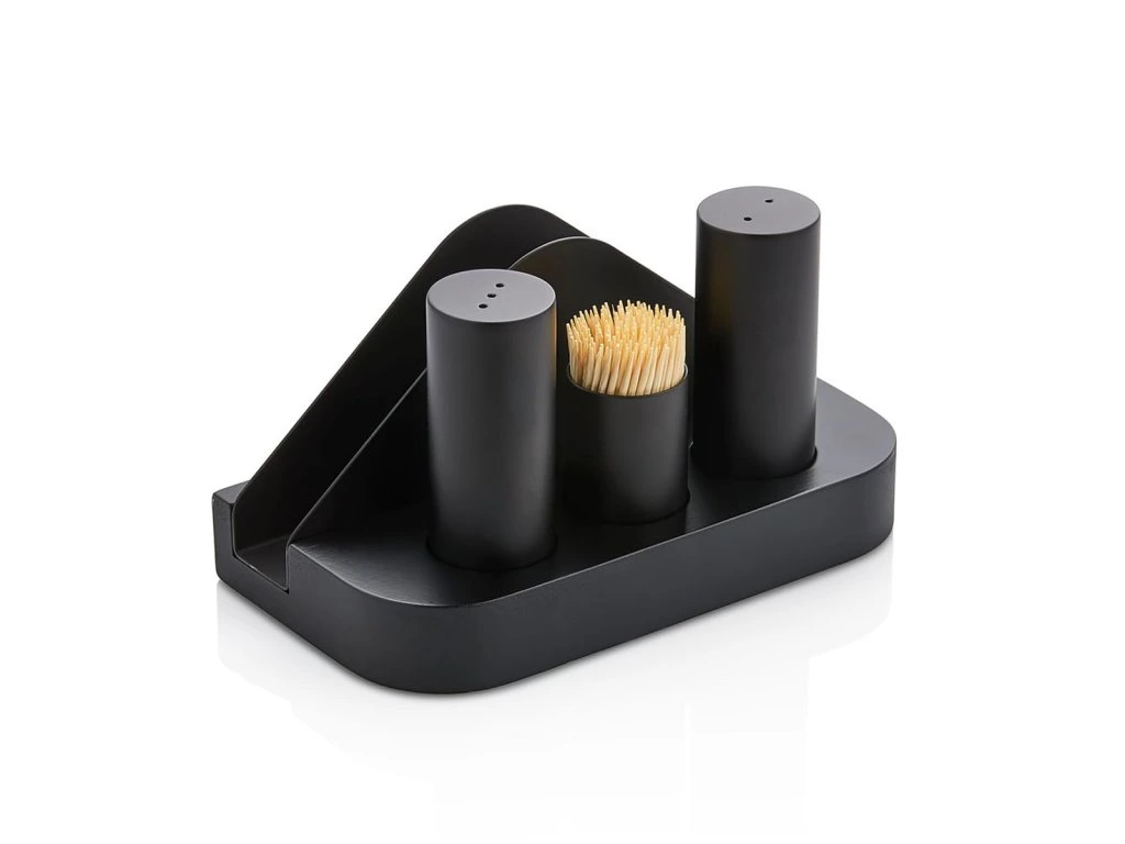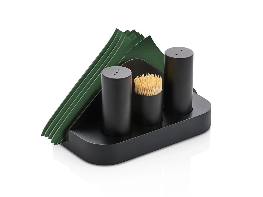 - Menage - 4 sztuki w stojaku - na serwetki, sól, pieprz i wykałaczki