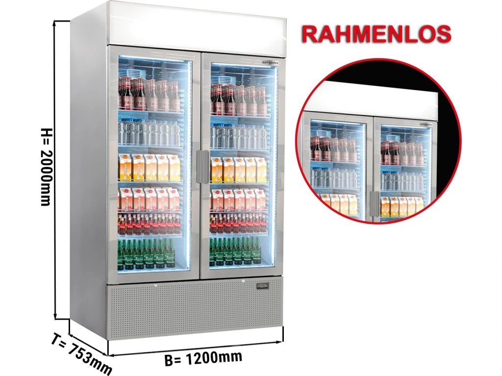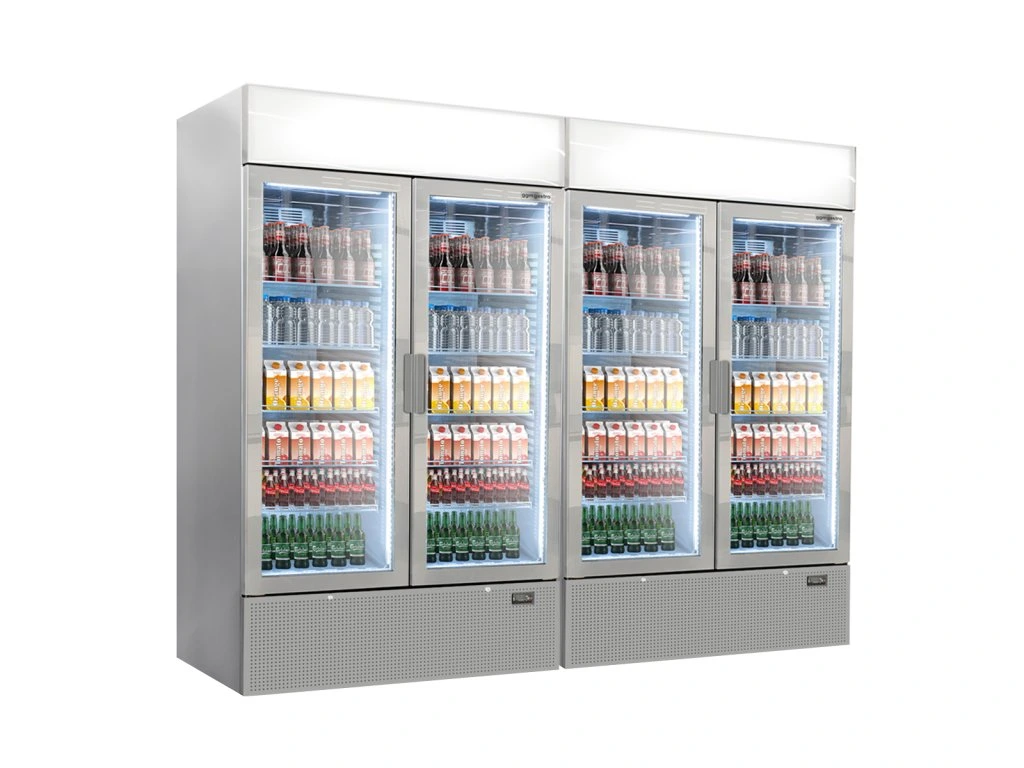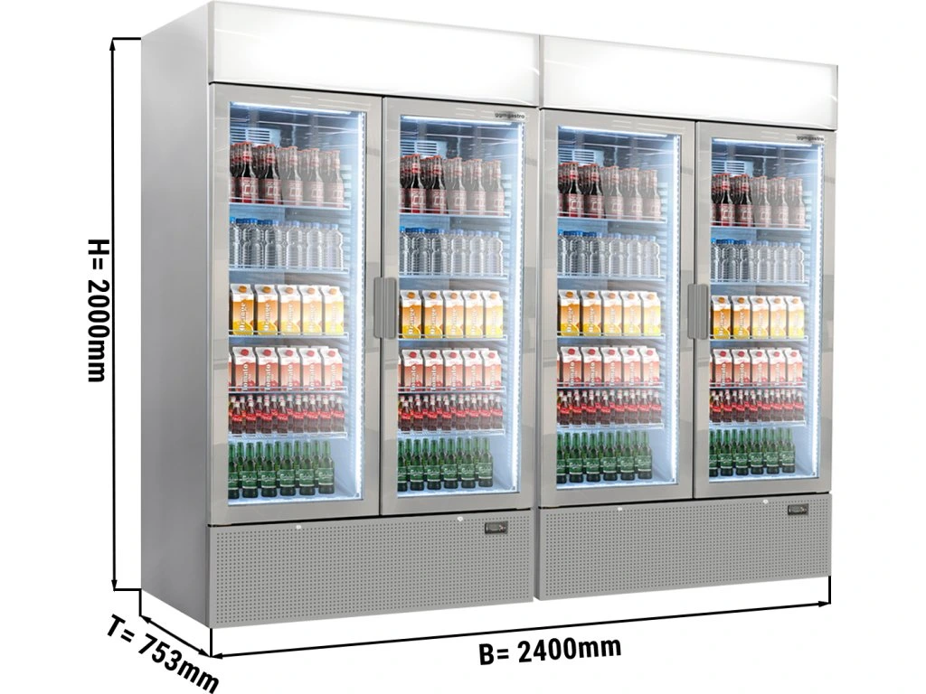 (2 sztuki) Chłodziarka na napoje - 2400 litrów - bezramkowa konstrukcja - 4 szklane drzwi & wyświetlacz reklamowy