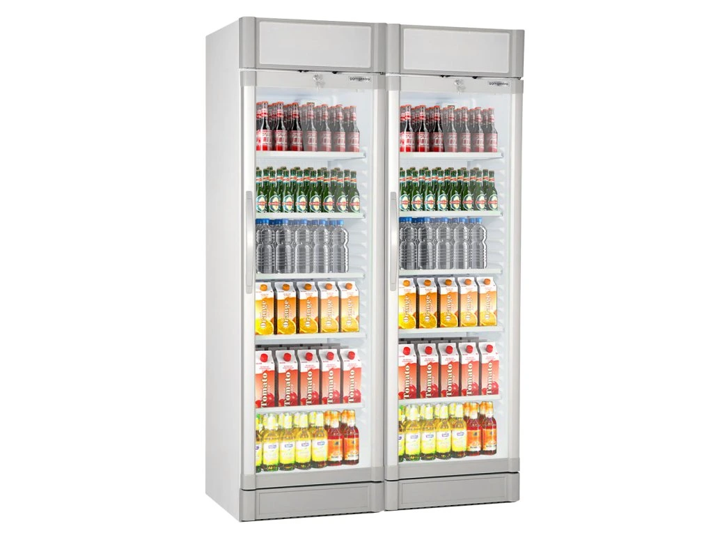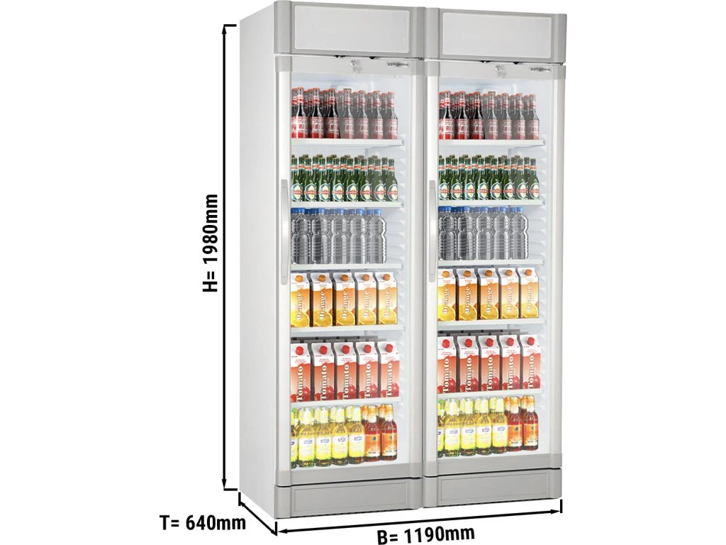 (2 sztuki) Chłodziarka na napoje - 690 litrów - 2 szklane drzwi & wyświetlacz reklamowy