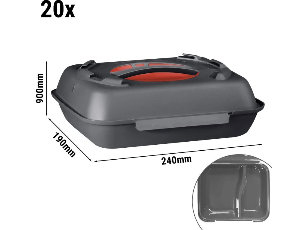 (20 sztuk) pojemnik na menu - 600 ml - podzielone - antracytowo-szare/czerwone