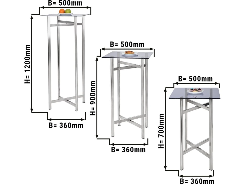 (3 części) Zestaw stolików bocznych/kawiowych - składana wysokość - 70, 90 & 120 cm
