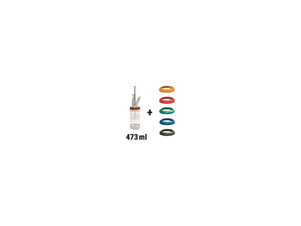 - 5 stałe pierścienie do porcjowania 7,5 - 10 - 15 - 22,5 - 30 ml