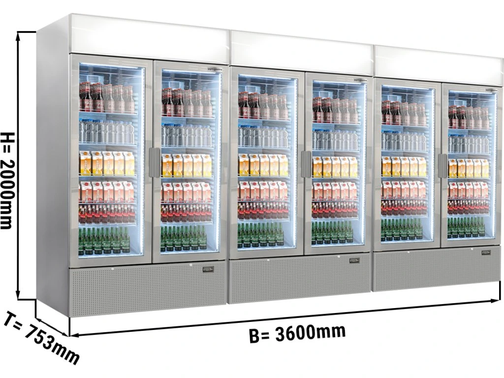 (3 sztuki) Chłodziarka do napojów - 3600 litrów - bezramkowa konstrukcja - 6 szklanych drzwi & wyświetlacz reklamowy