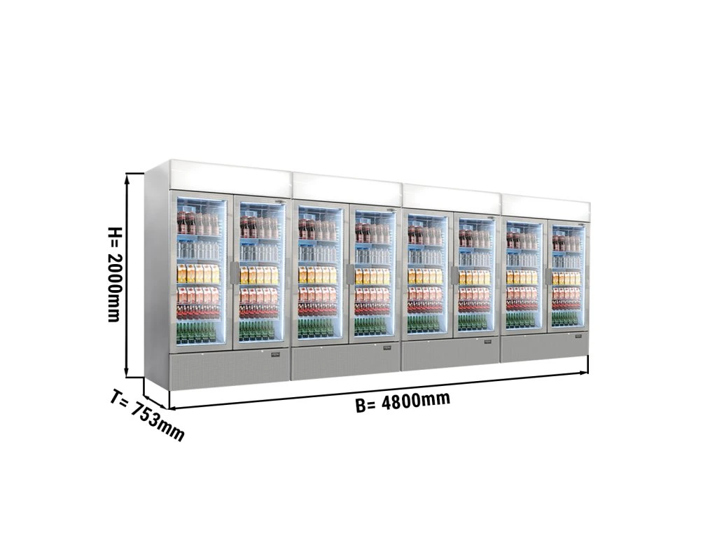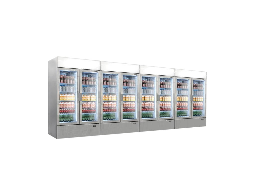 (4 sztuki) Chłodziarka do napojów - 4800 litrów - bezramkowa konstrukcja - 8 szklanych drzwi & wyświetlacz reklamowy