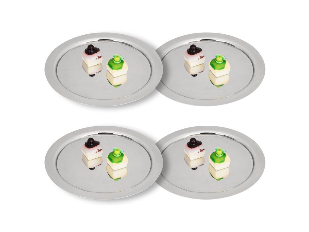 (4 sztuki) Taca do serwowania ze stali nierdzewnej - Ø 390 mm - polerowana