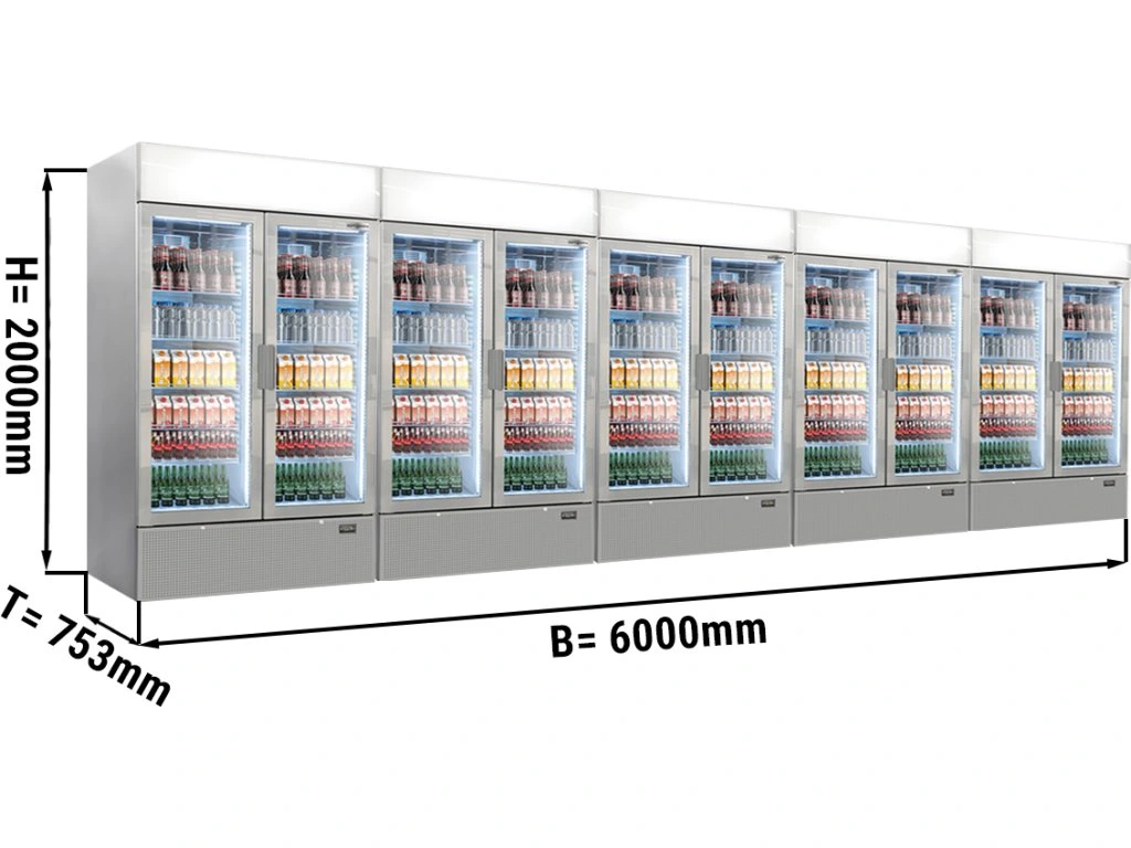 (5 sztuk) Chłodziarka do napojów - 6000 litrów - bezramowa konstrukcja - 10 szklanych drzwi i wyświetlacz reklamowy