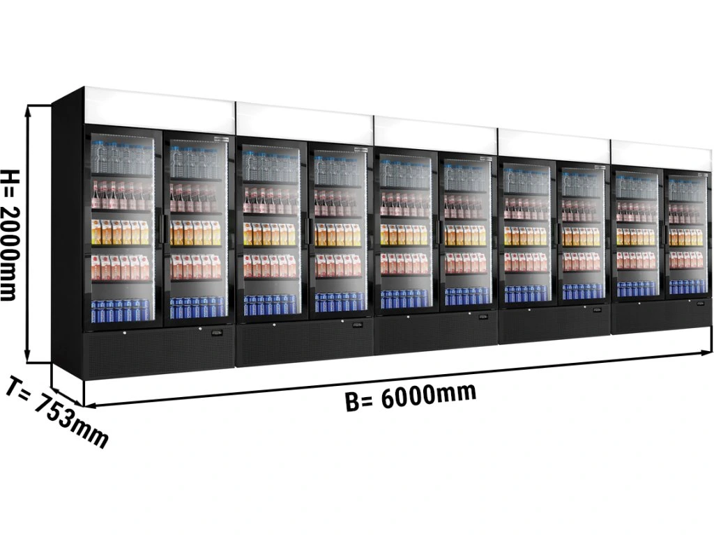 (5 sztuk) Chłodziarka do napojów - 6000 litrów - bezramowa konstrukcja - 10 szklanych drzwi & wyświetlacz reklamowy