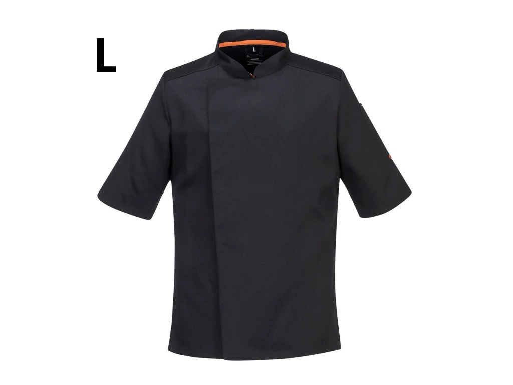 (5 sztuk) Kurtka szefa kuchni z krótkim rękawem MeshAir Pro - czarna - Rozmiar: L
