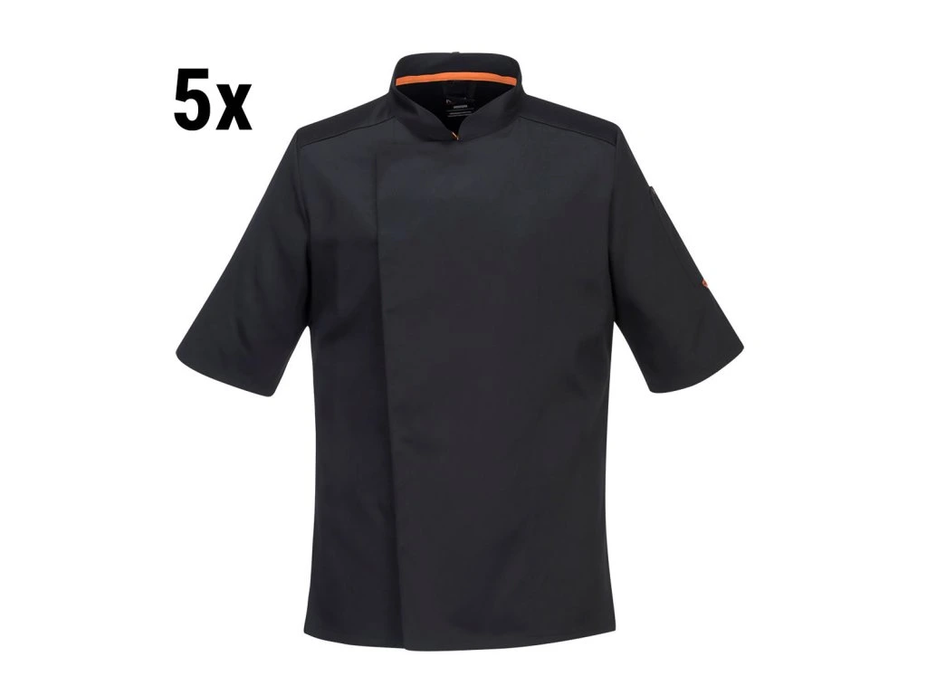 (5 sztuk) Kurtka szefa kuchni z krótkim rękawem MeshAir Pro - czarna - Rozmiar: M