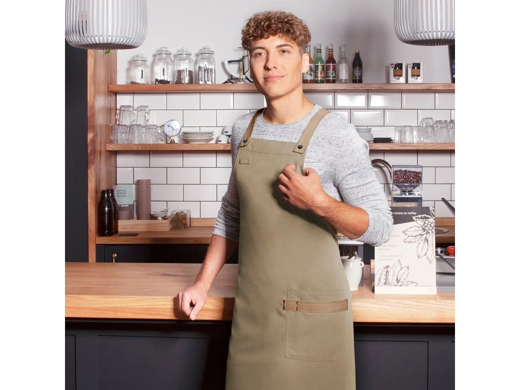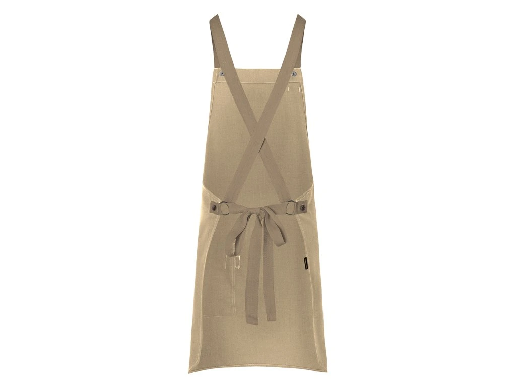 - Stylowy, modny fartuch na szelkach o skośnym kroju z krzyżowymi paskami odciążającymi szyję