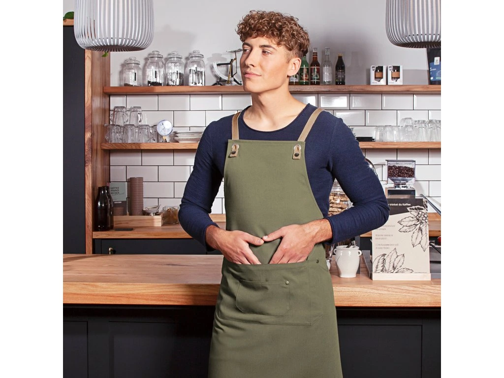 (6 szt.) KARLOWSKY | Fartuch na szelkach Urban-Nature - Zielony mech