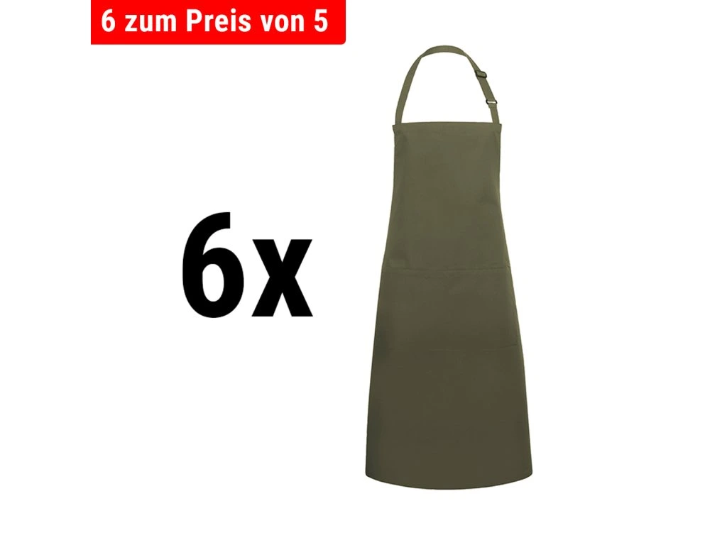 (6 szt.) KARLOWSKY | Fartuch na szelkach z kieszenią Basic - Zielony mech