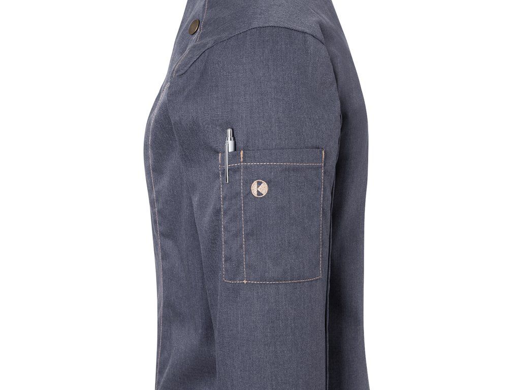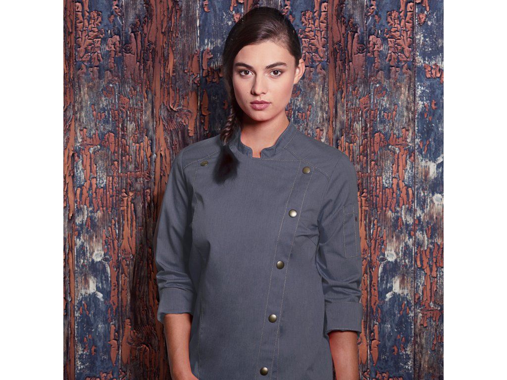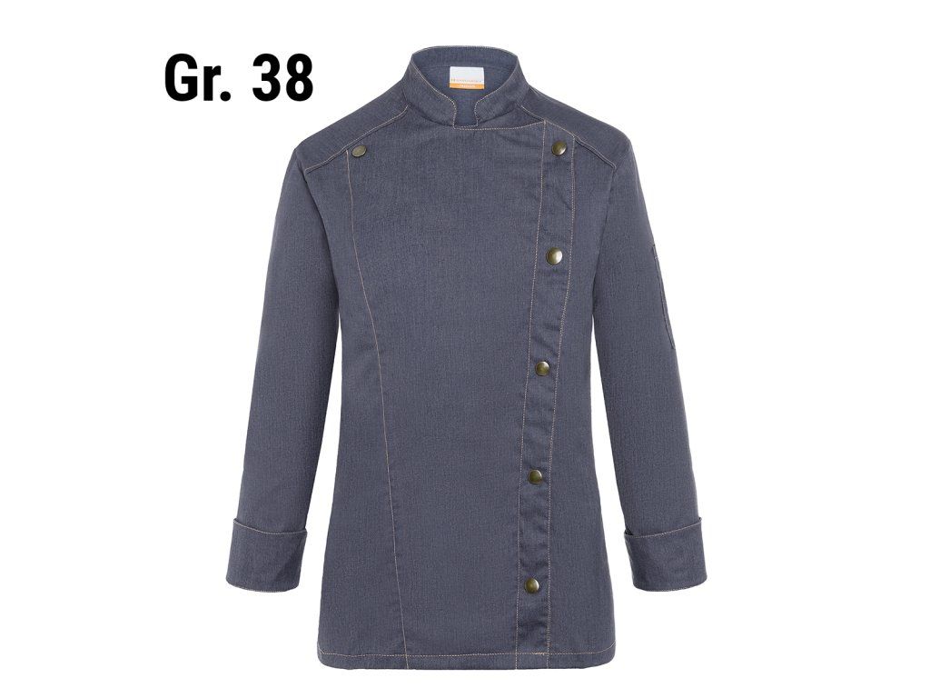 - Modna damska kurtka szefa kuchni w dżinsach o smukłej sylwetce