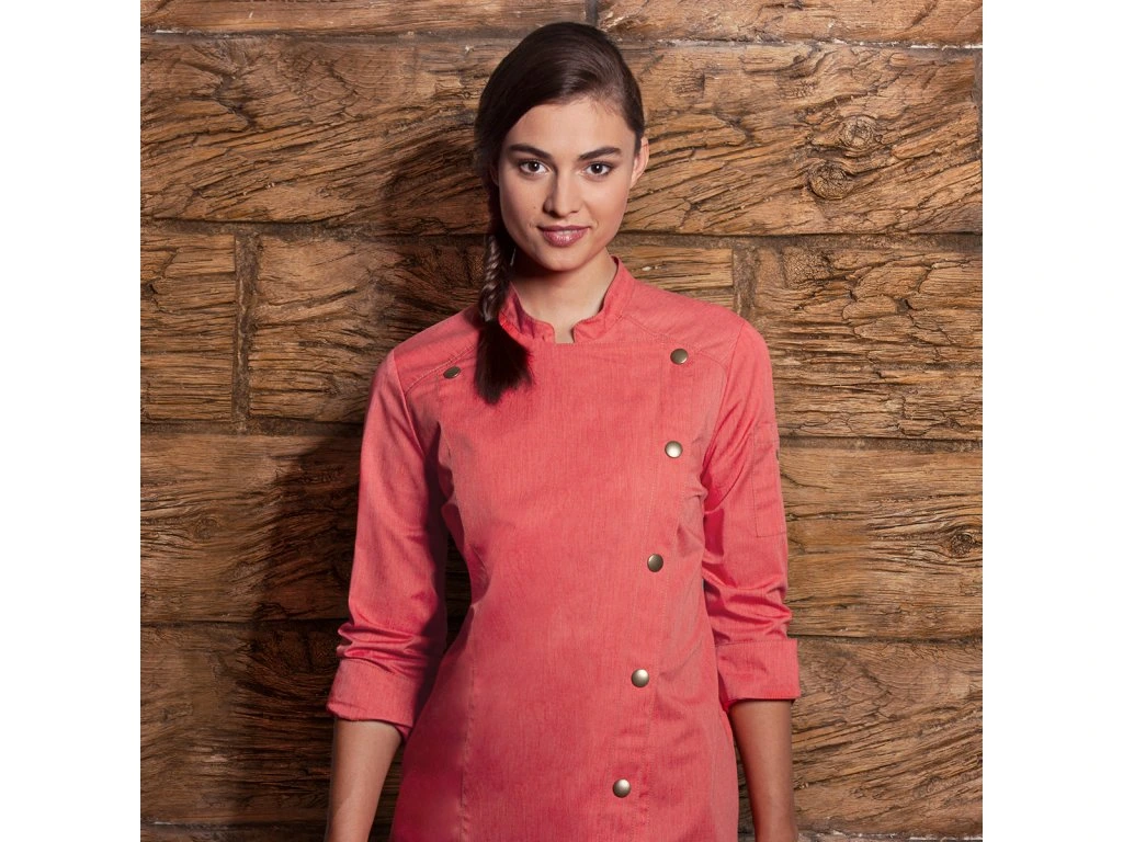 - Modna damska kurtka szefa kuchni w dżinsach o smukłej sylwetce