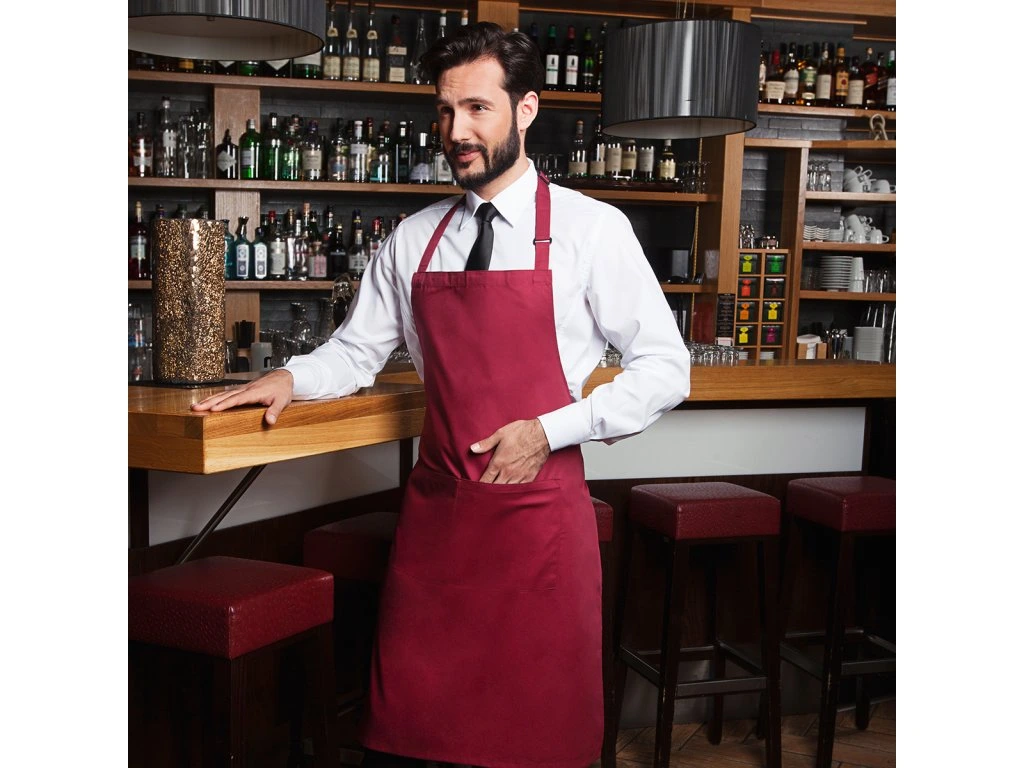(6 sztuk) KARLOWSKY | Fartuch na szelkach z kieszenią Basic - Bordowy