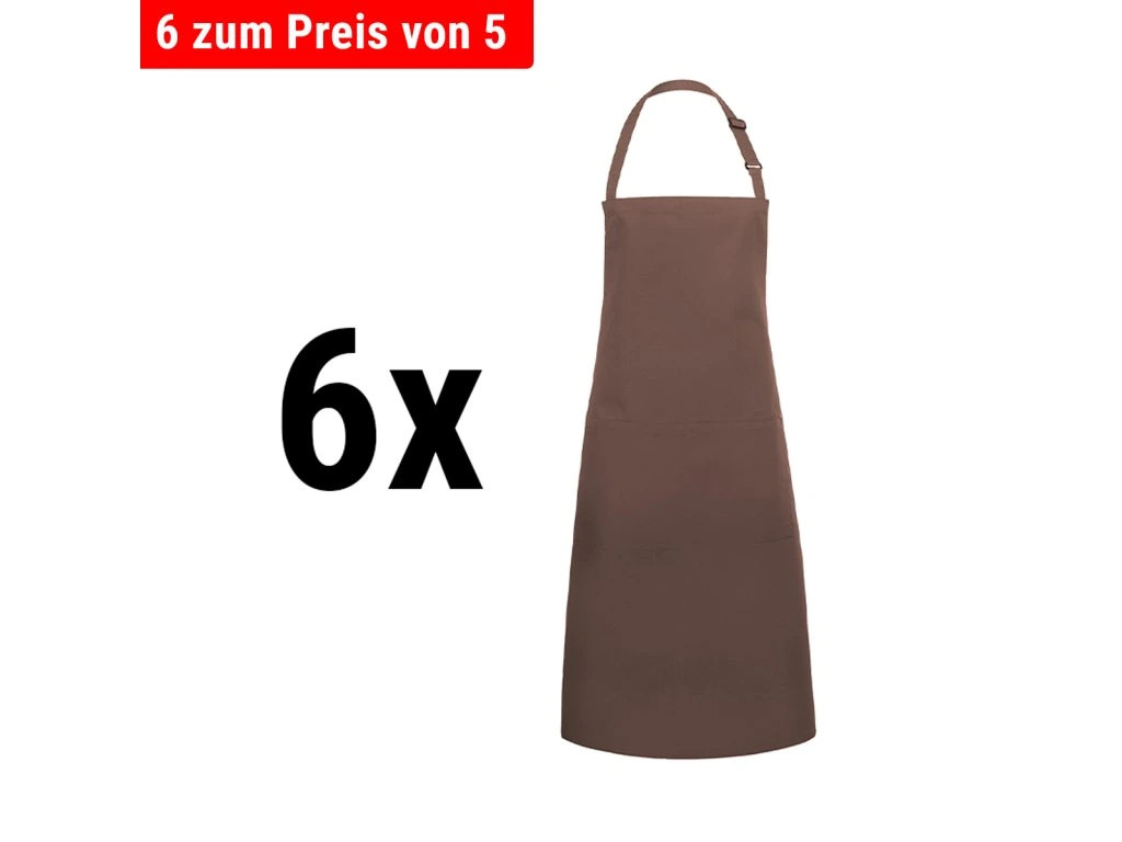 (6 sztuk) KARLOWSKY | Fartuch na szelkach z kieszenią Basic - Jasnobrązowy