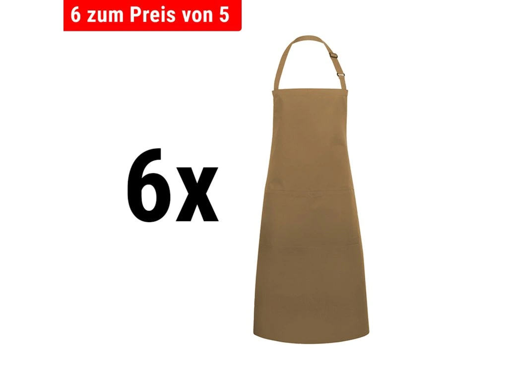 (6 sztuk) KARLOWSKY | Fartuch na szelkach z kieszenią Basic - Kamelowy
