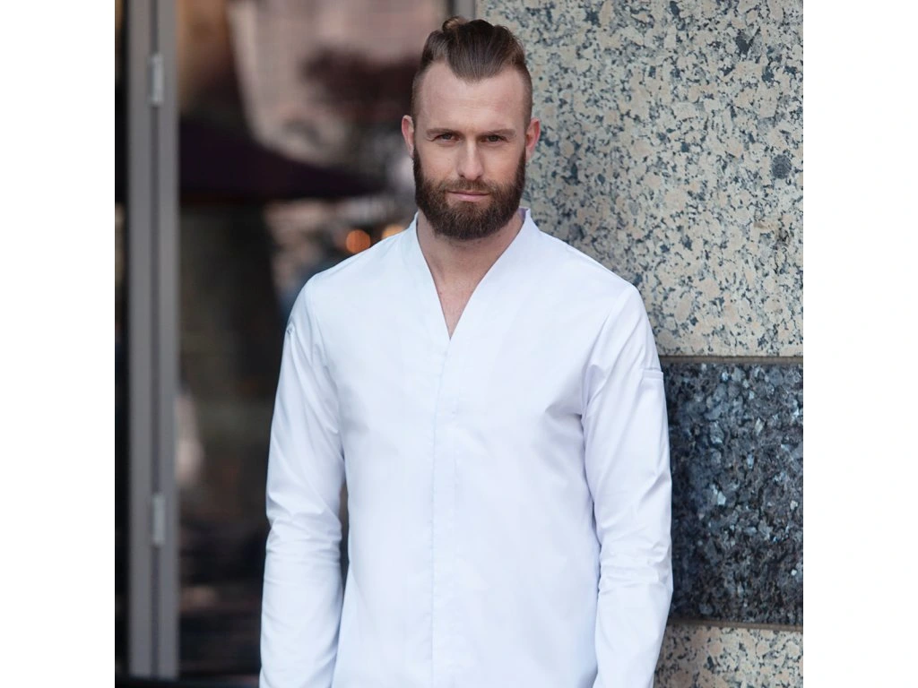 - Luksusowa męska kurtka szefa kuchni o smukłej sylwetce