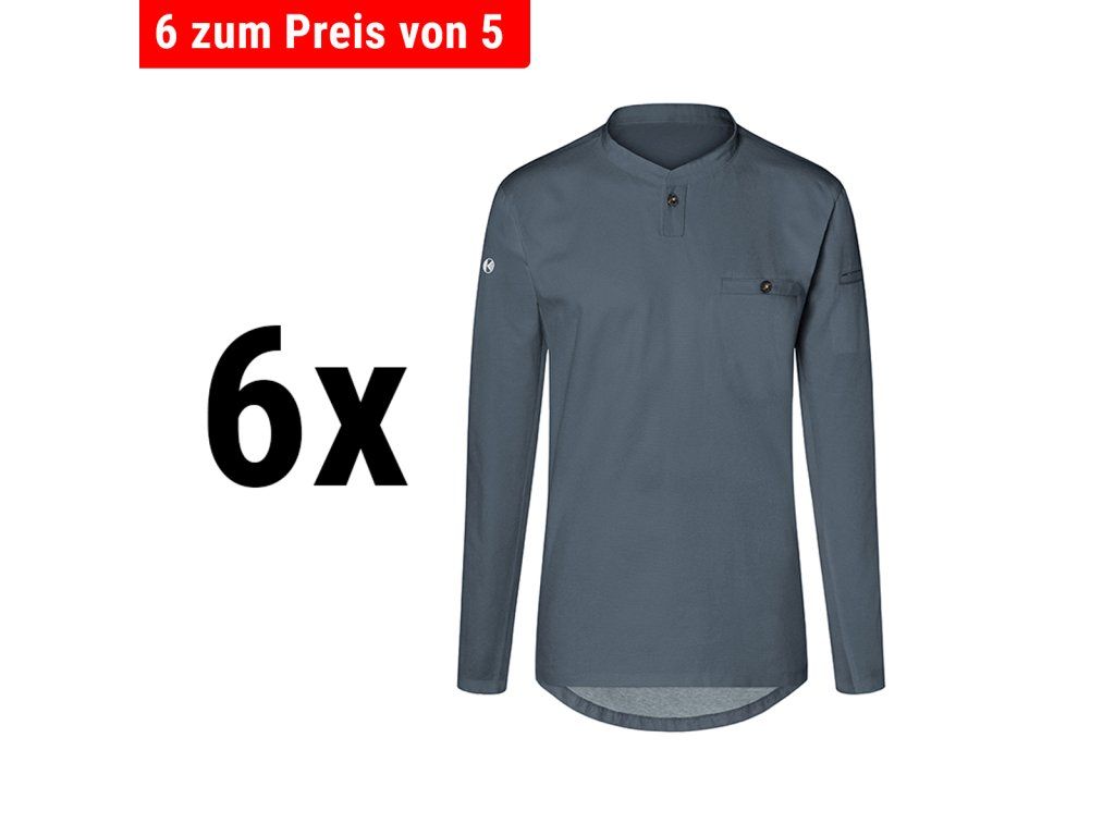 (6 sztuk) KARLOWSKY | Męska koszula robocza z długim rękawem Performance - Antracyt - Rozmiar: S
