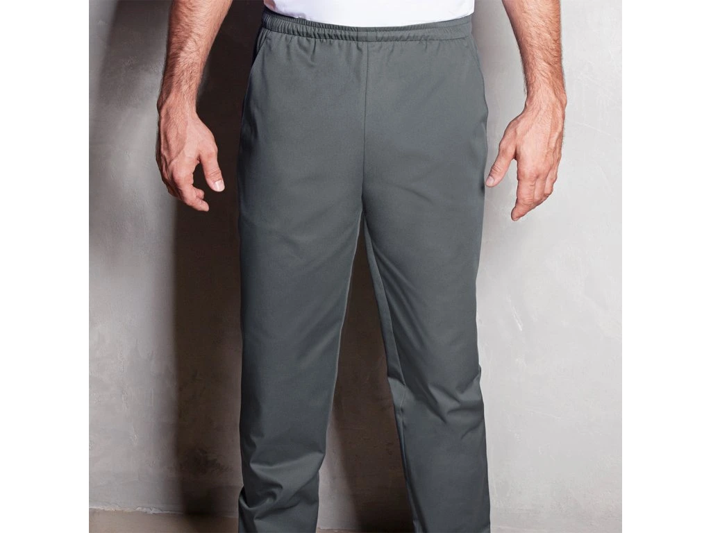 - Wygodne spodnie robocze do zakładania z gumką i sznurkiem w pasie