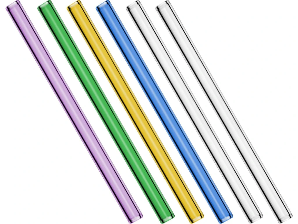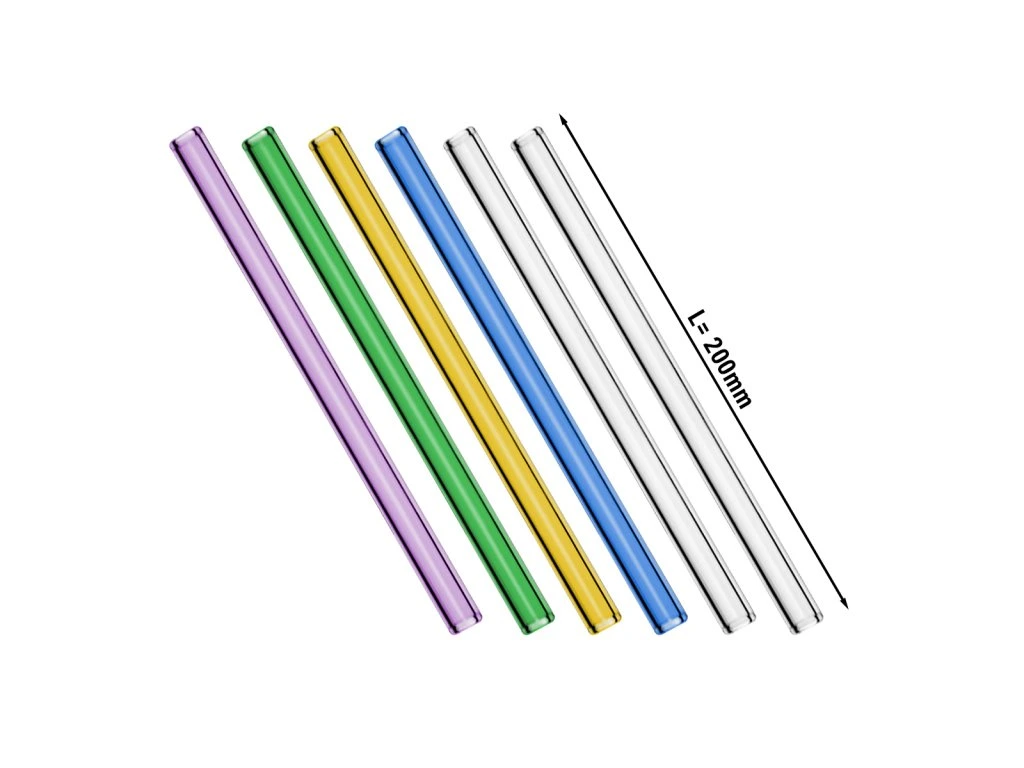 (6 sztuk) Szklane słomki do picia - proste - 200 mm - różne kolory - w zestawie z nylonową szczoteczką do czyszczenia