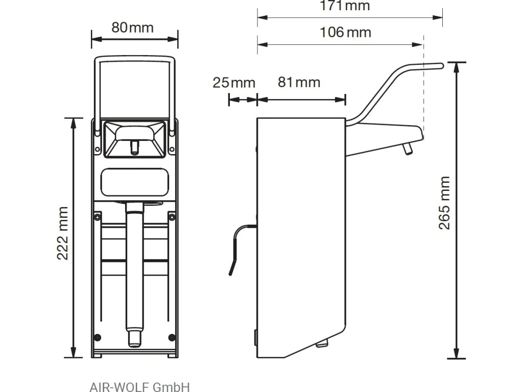 - Wymiary zewnętrzne szer. x gł. x wys: 80 mm x 176 mm x 265 mm