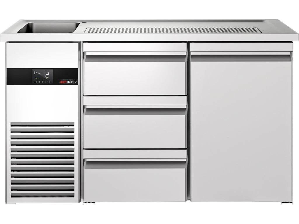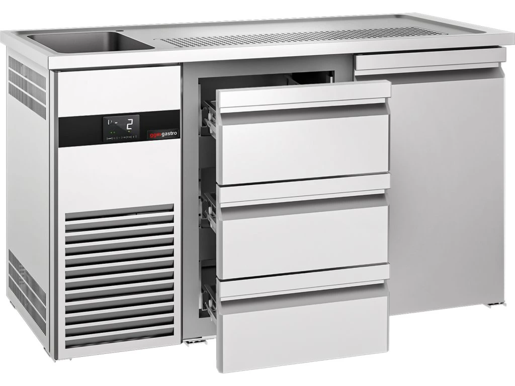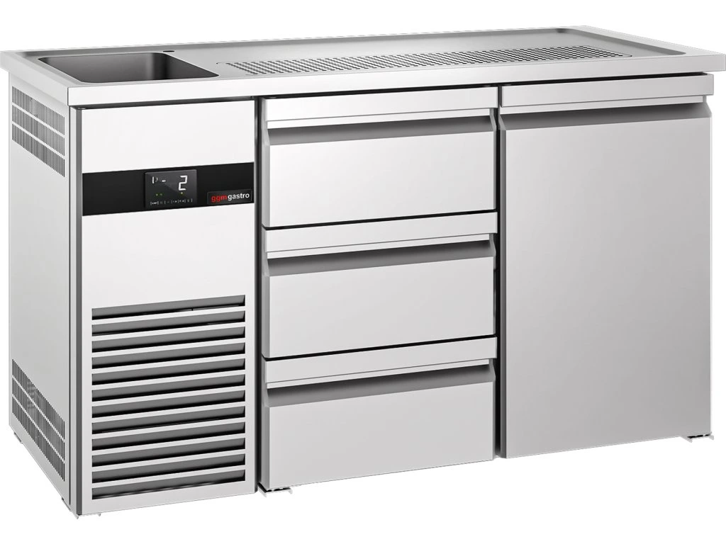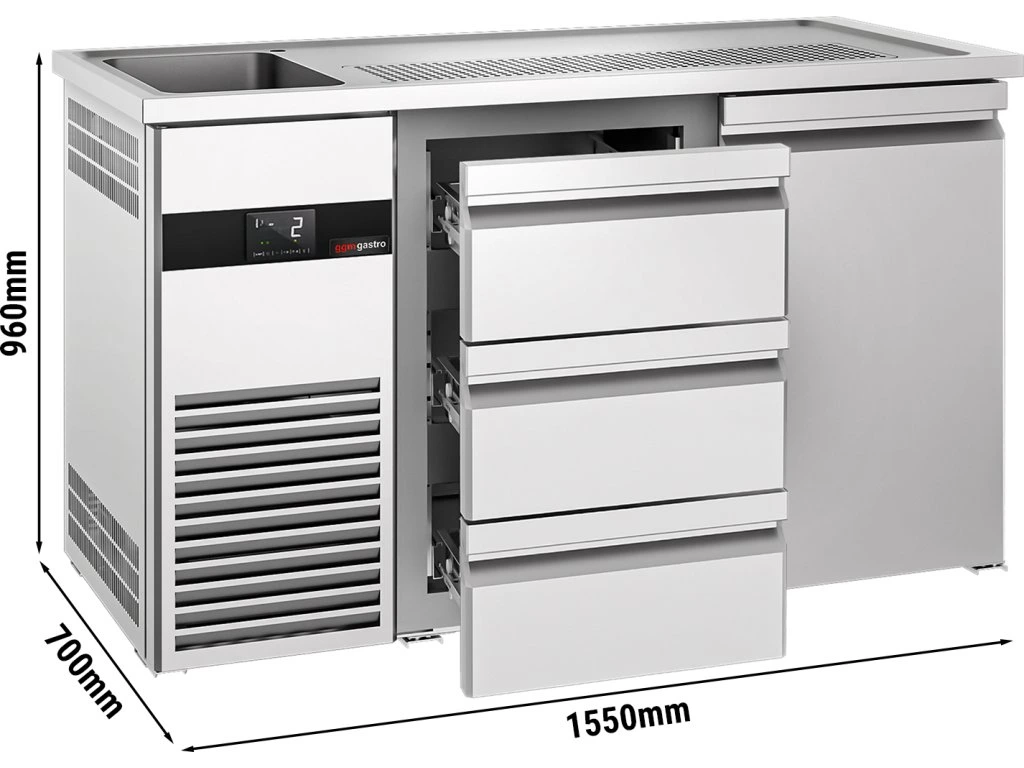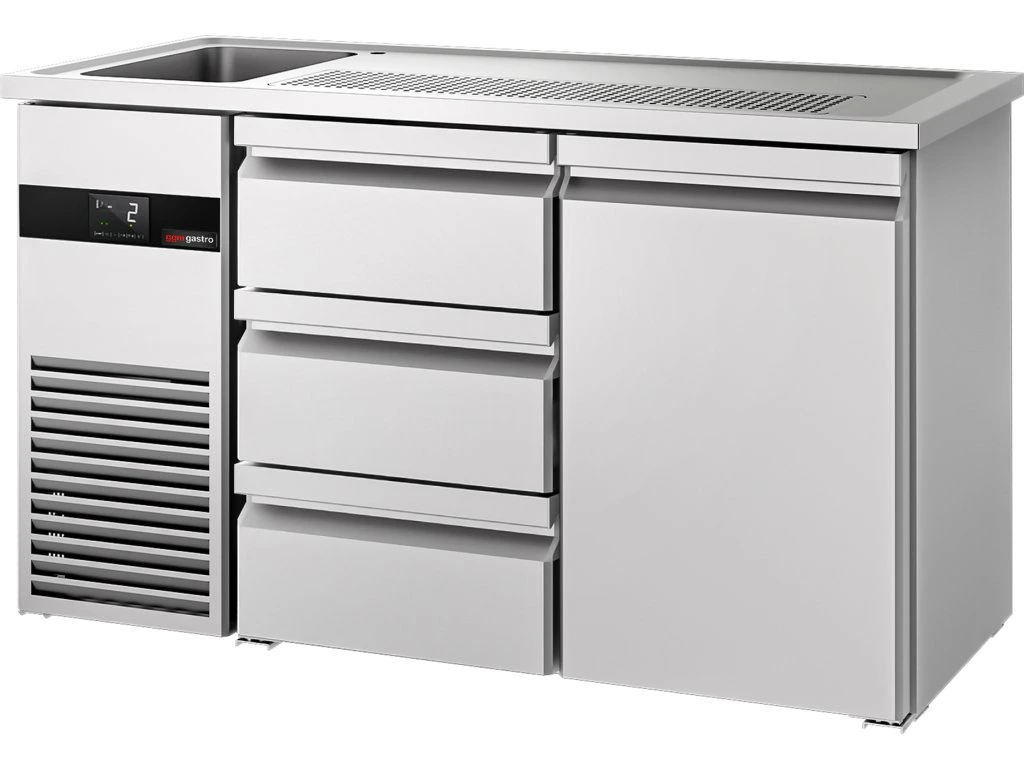 Barowy stół chłodniczy PREMIUM - 1550x700 mm - 1 drzwi & 3 szuflady