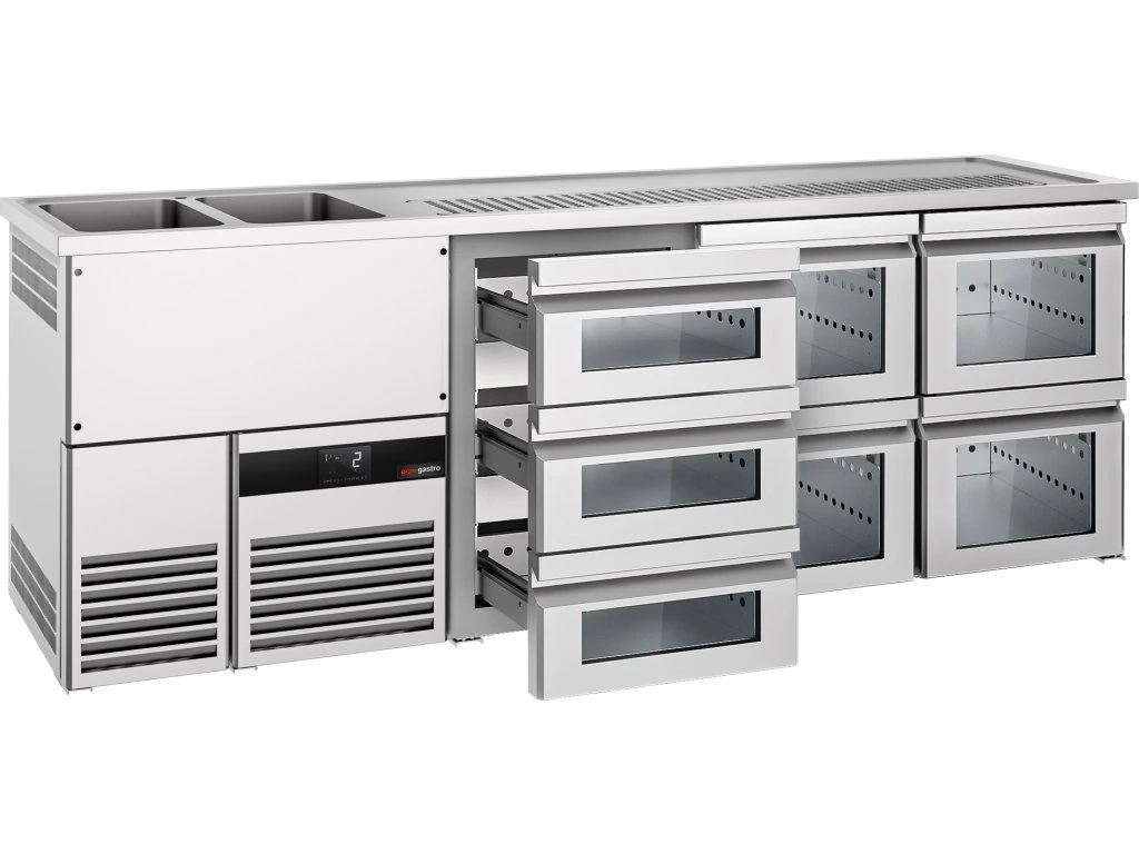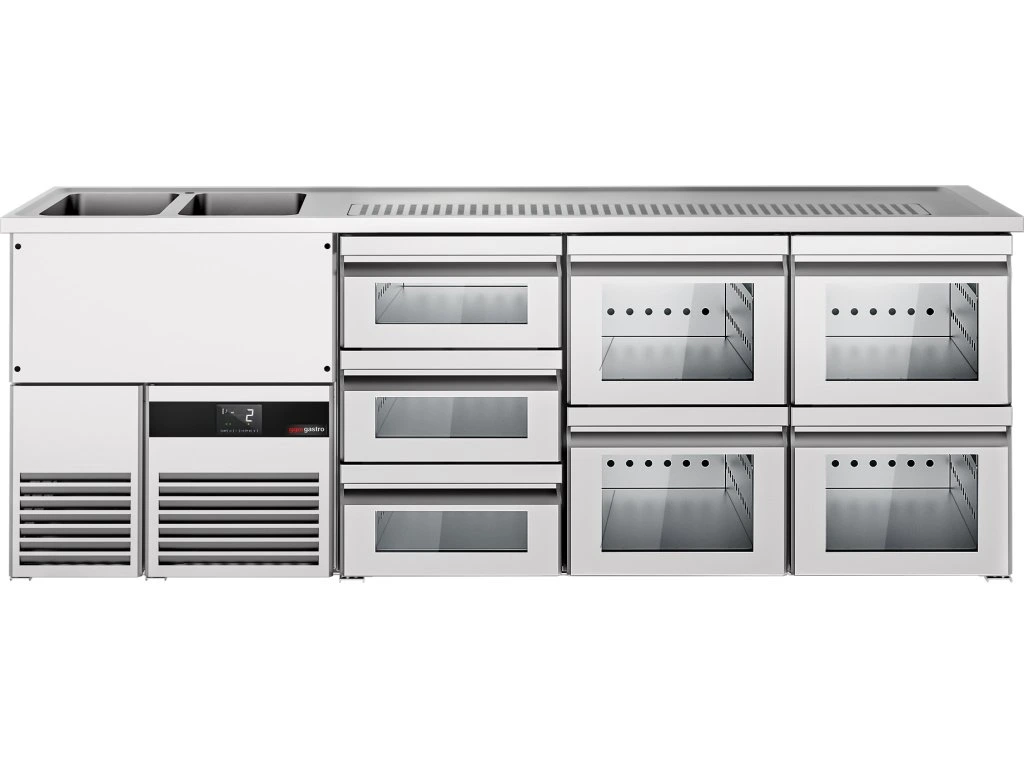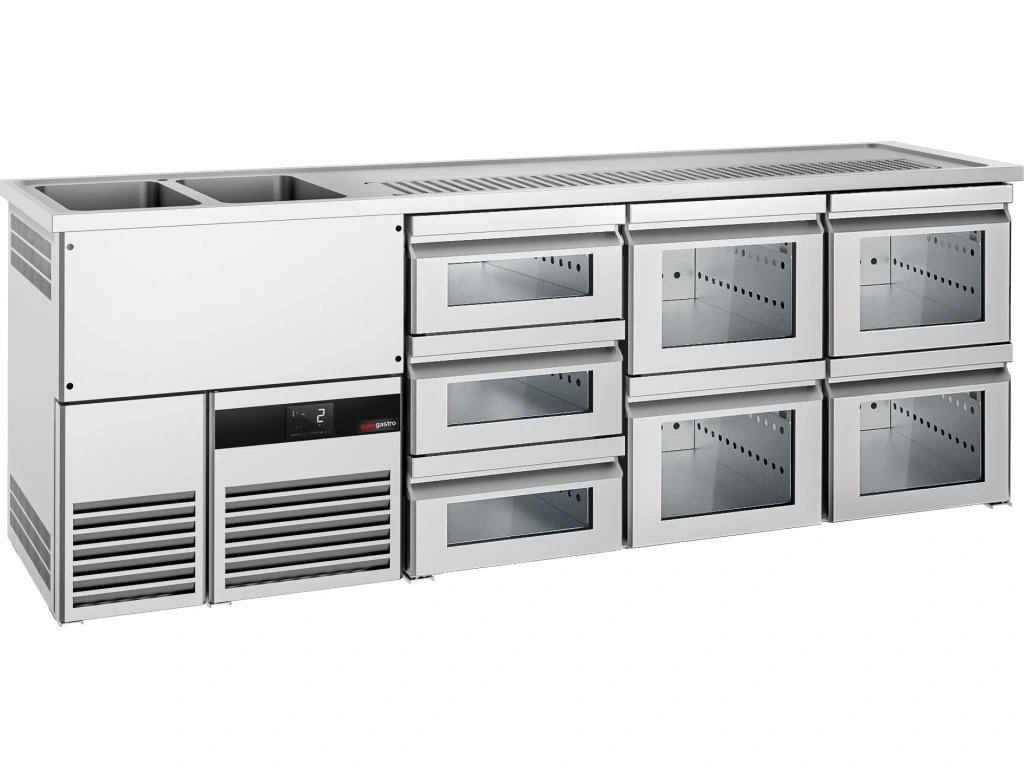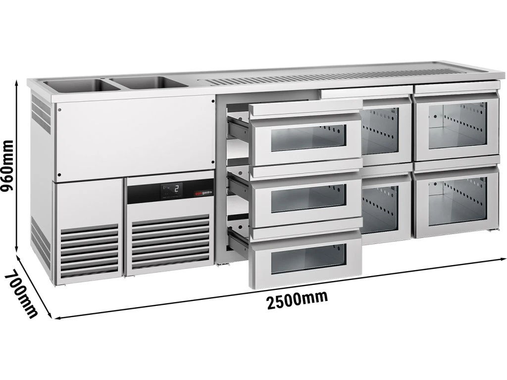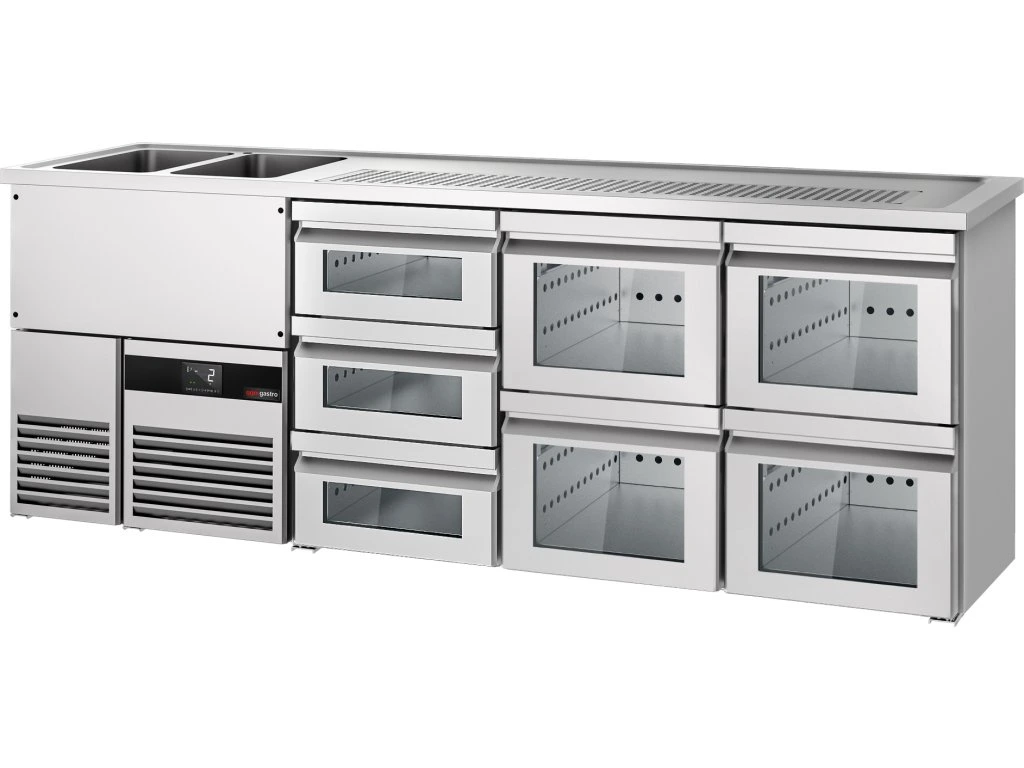 Barowy stół chłodniczy PREMIUM - 2500x700mm - 7 szklanych szuflad