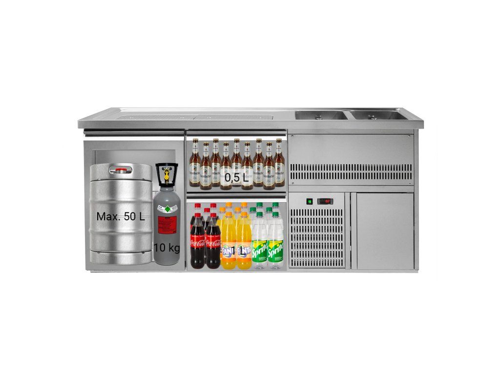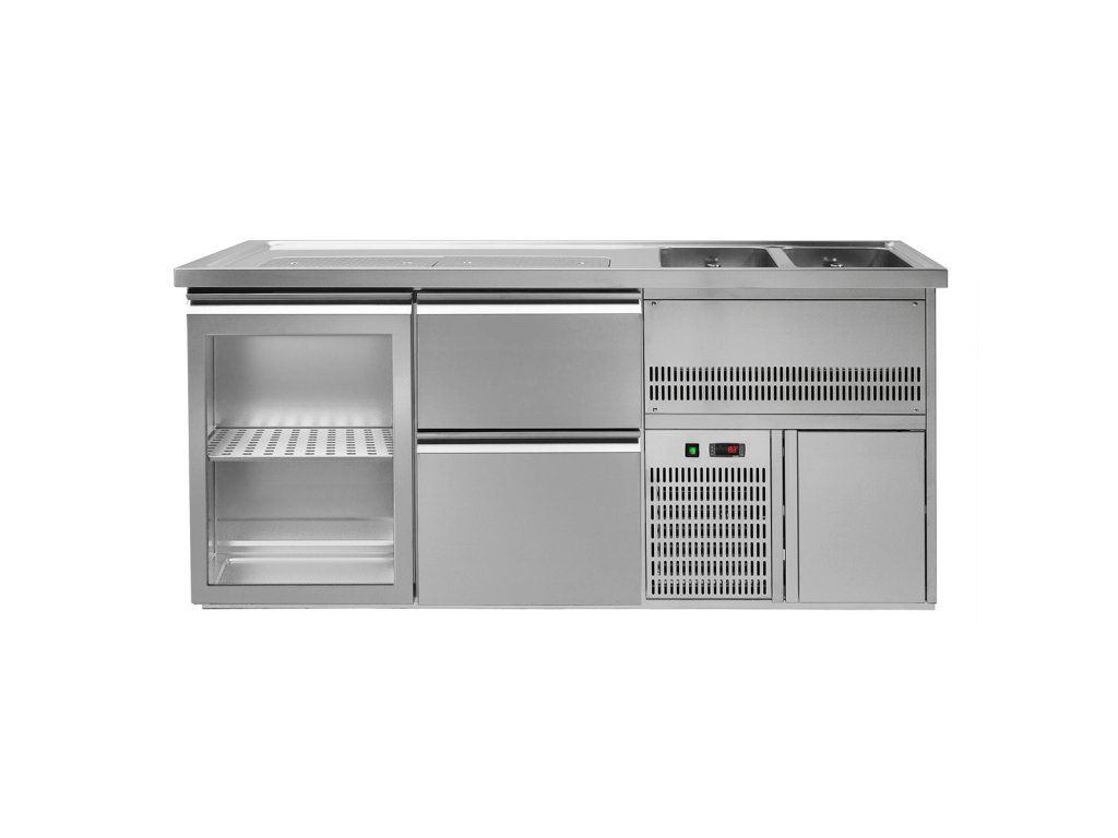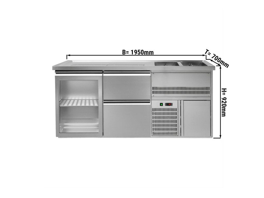 Barowy stół chłodniczy PREMIUM PLUS - 1950x700 mm - 1 szklane drzwi & 2 szuflady