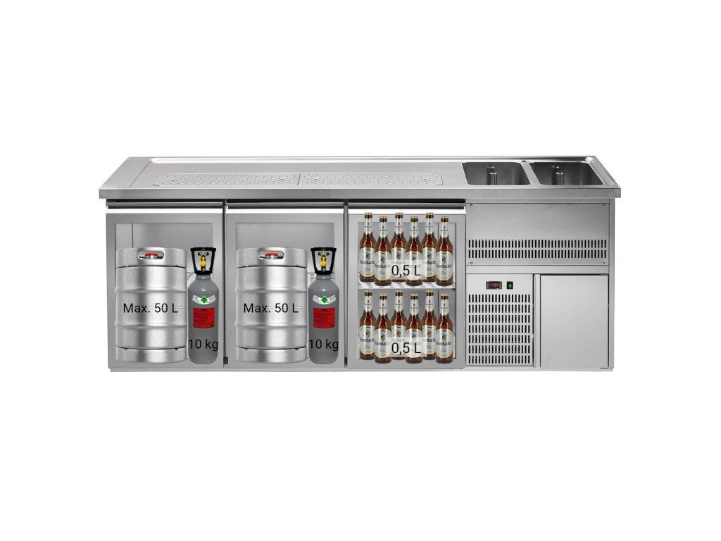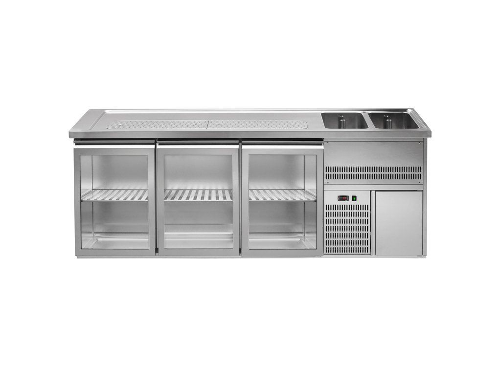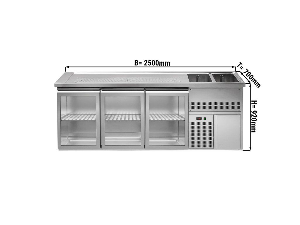 Barowy stół chłodniczy PREMIUM PLUS - 2500x700mm - 3 szklane drzwi