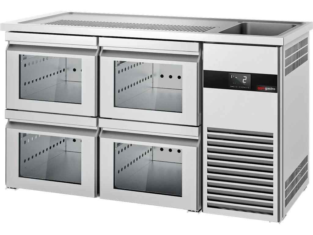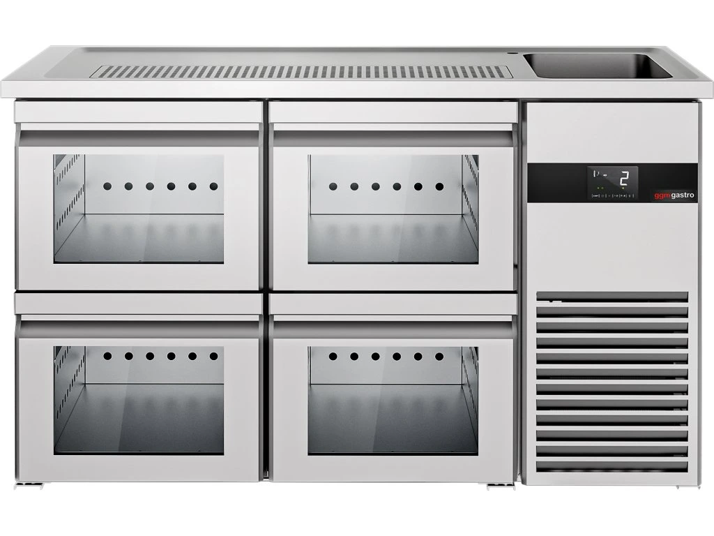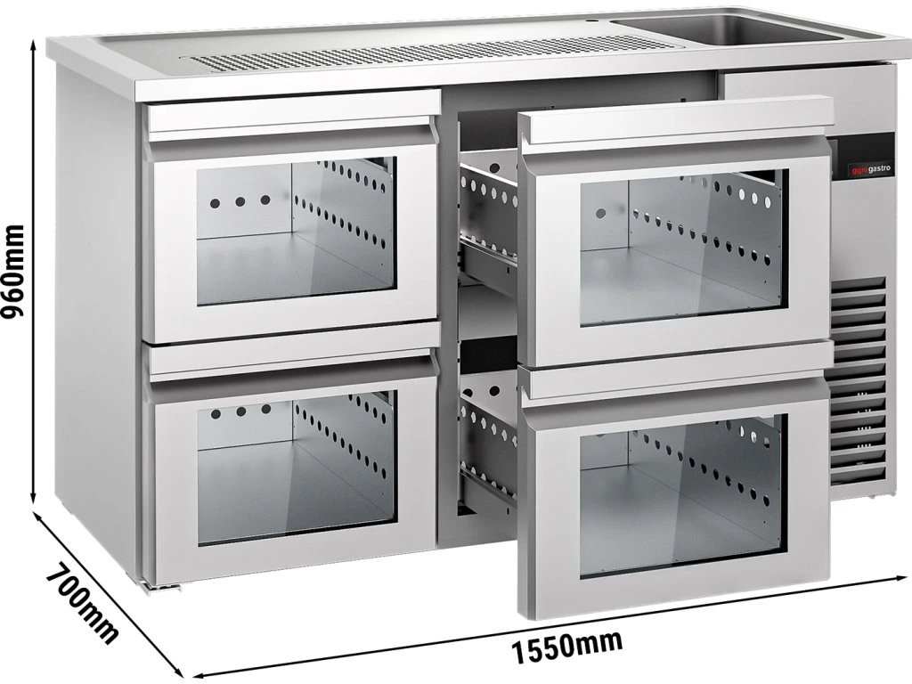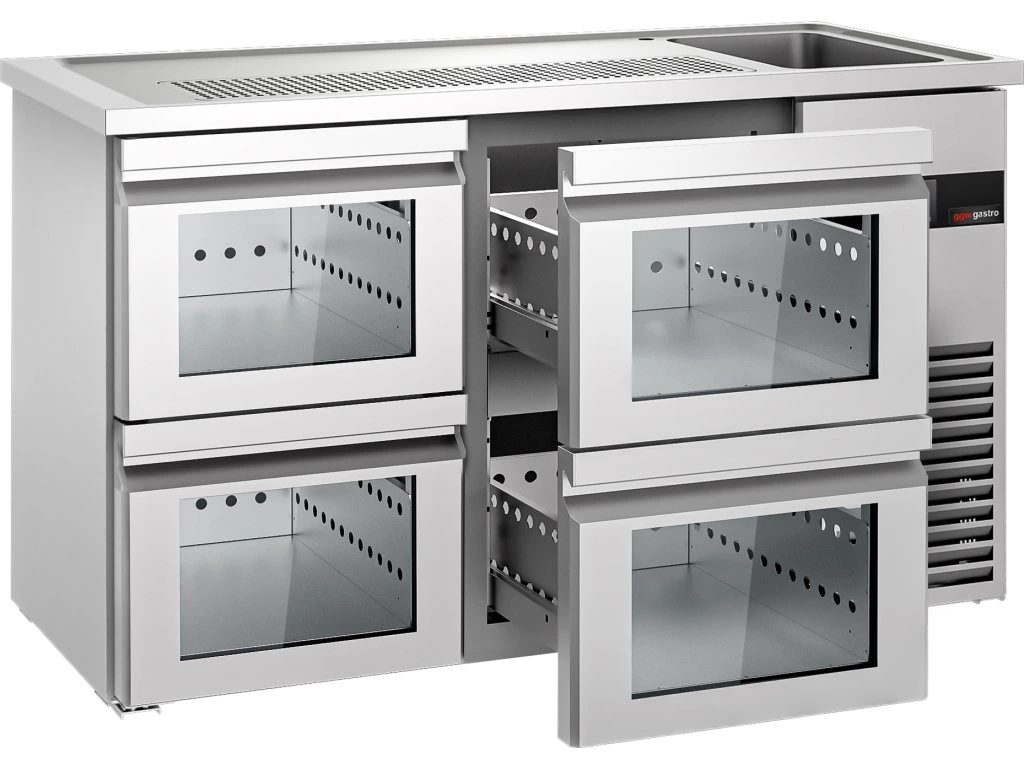 Barowy stół chłodniczy PREMIUM - 1550x700 mm - 4 szklane szuflady