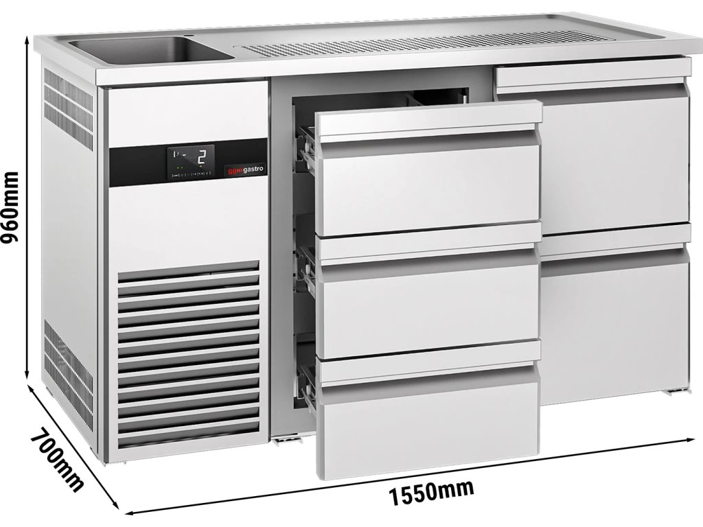 Barowy stół chłodniczy PREMIUM - 1550x700 mm - 5 szuflad