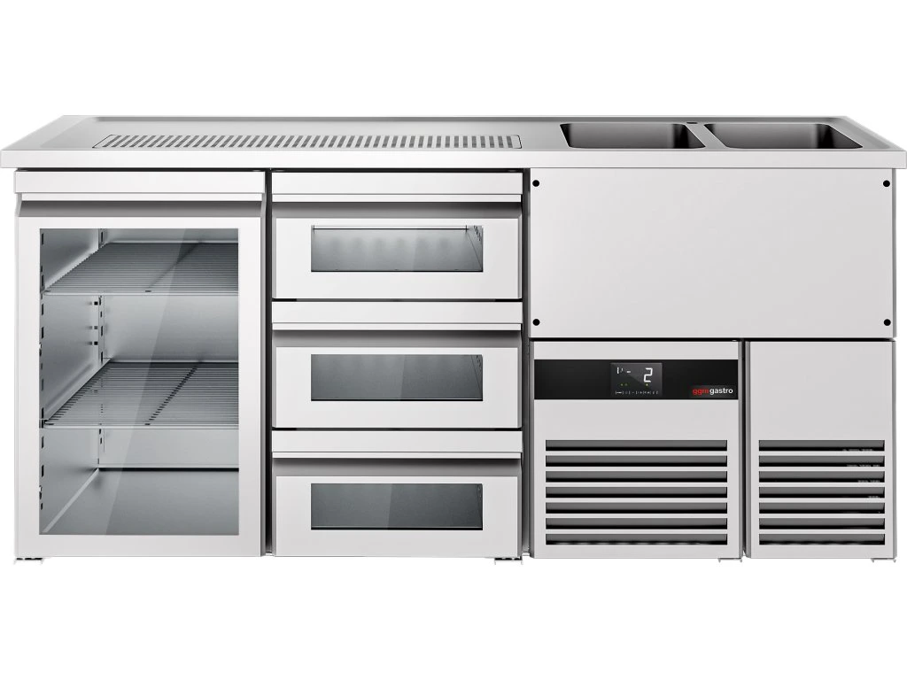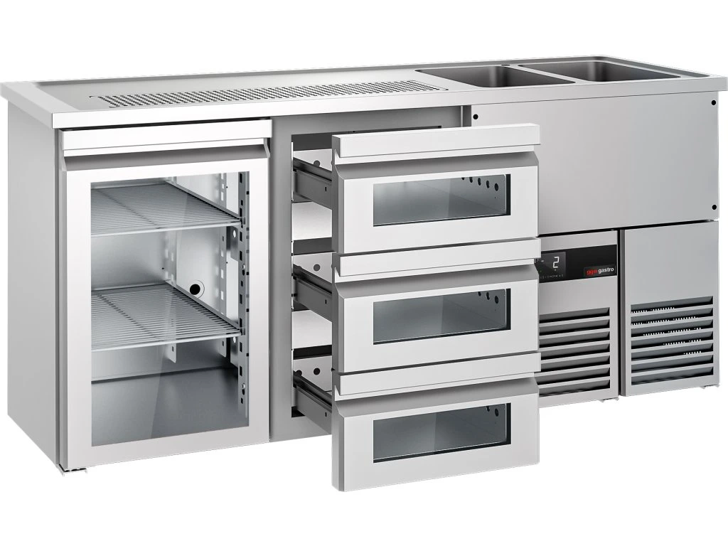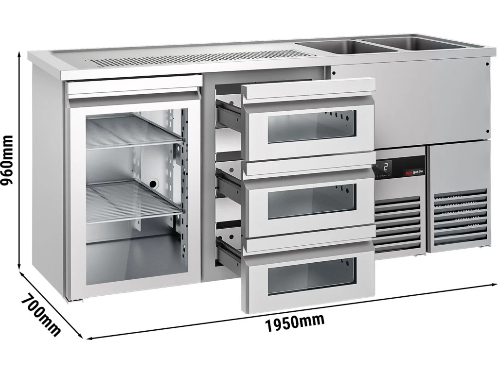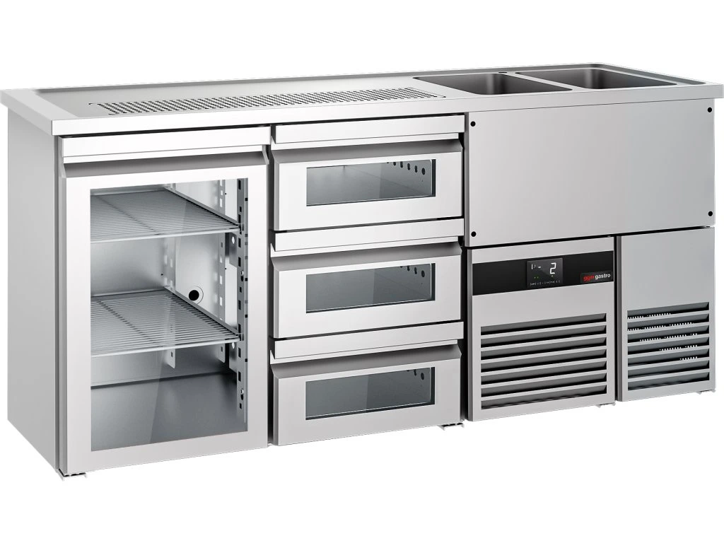 Barowy stół chłodniczy PREMIUM - 1950x700 mm - 1 szklane drzwi & 3 szklane szuflady