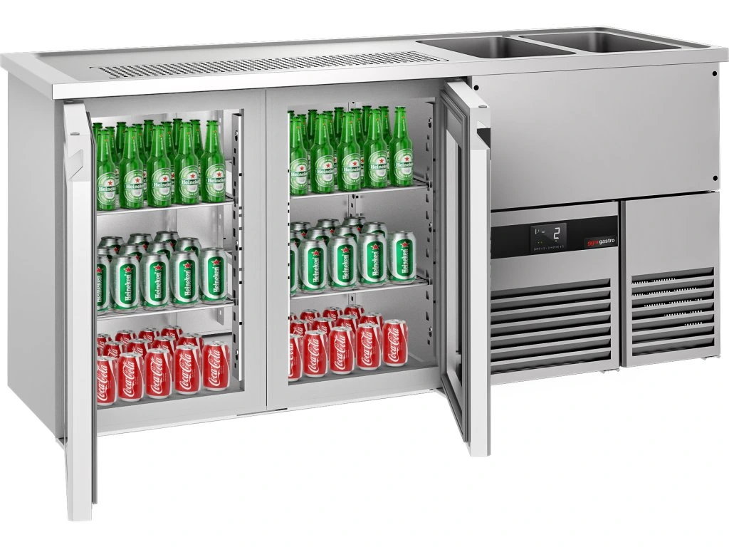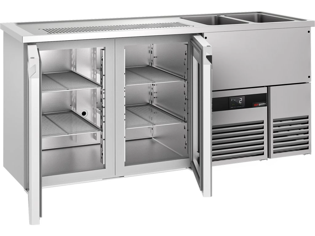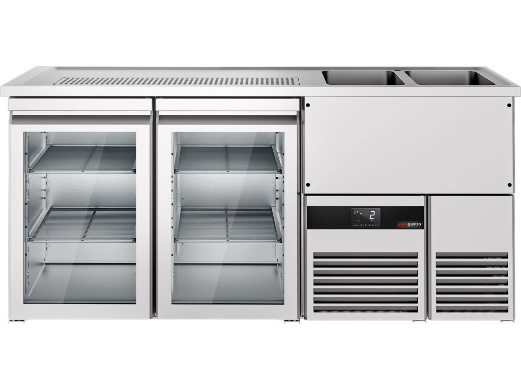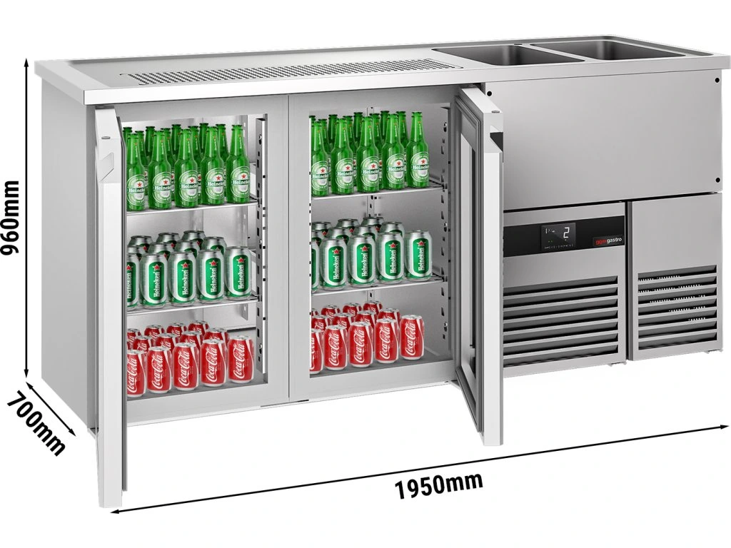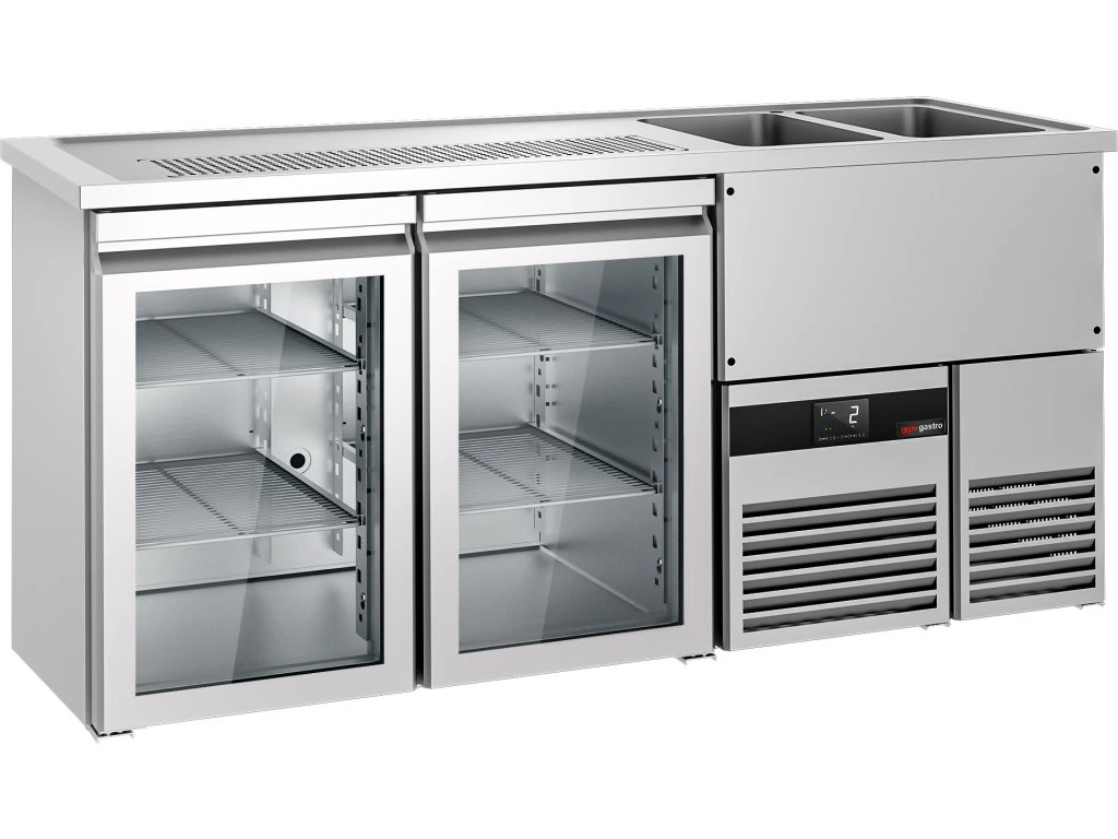 Barowy stół chłodniczy PREMIUM - 1950x700 mm - 2 szklane drzwi