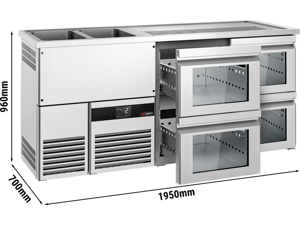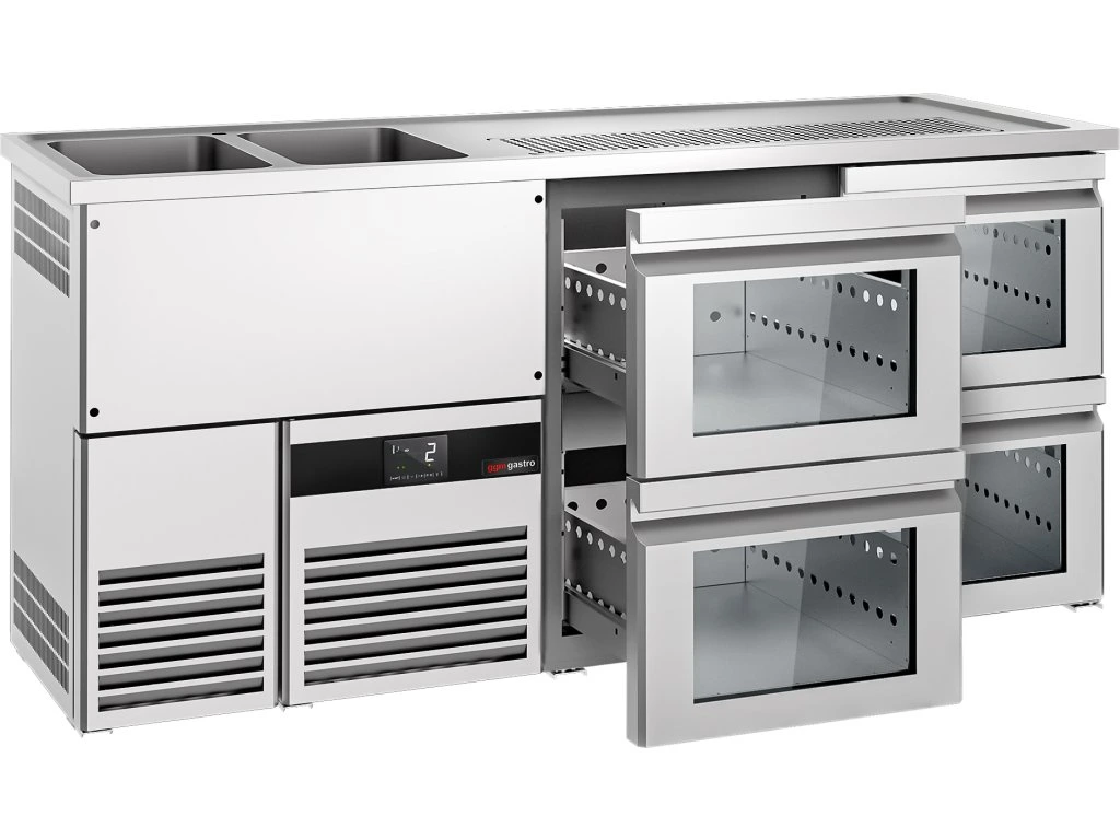 Barowy stół chłodniczy PREMIUM - 1950x700mm - 4 szklane szuflady