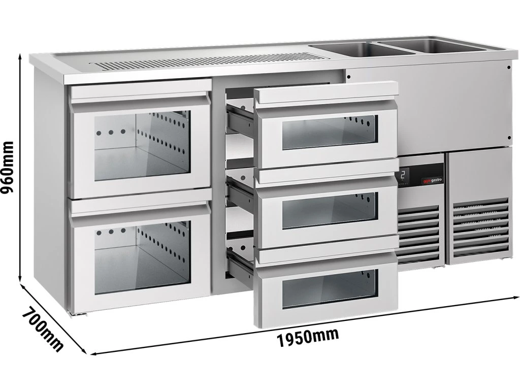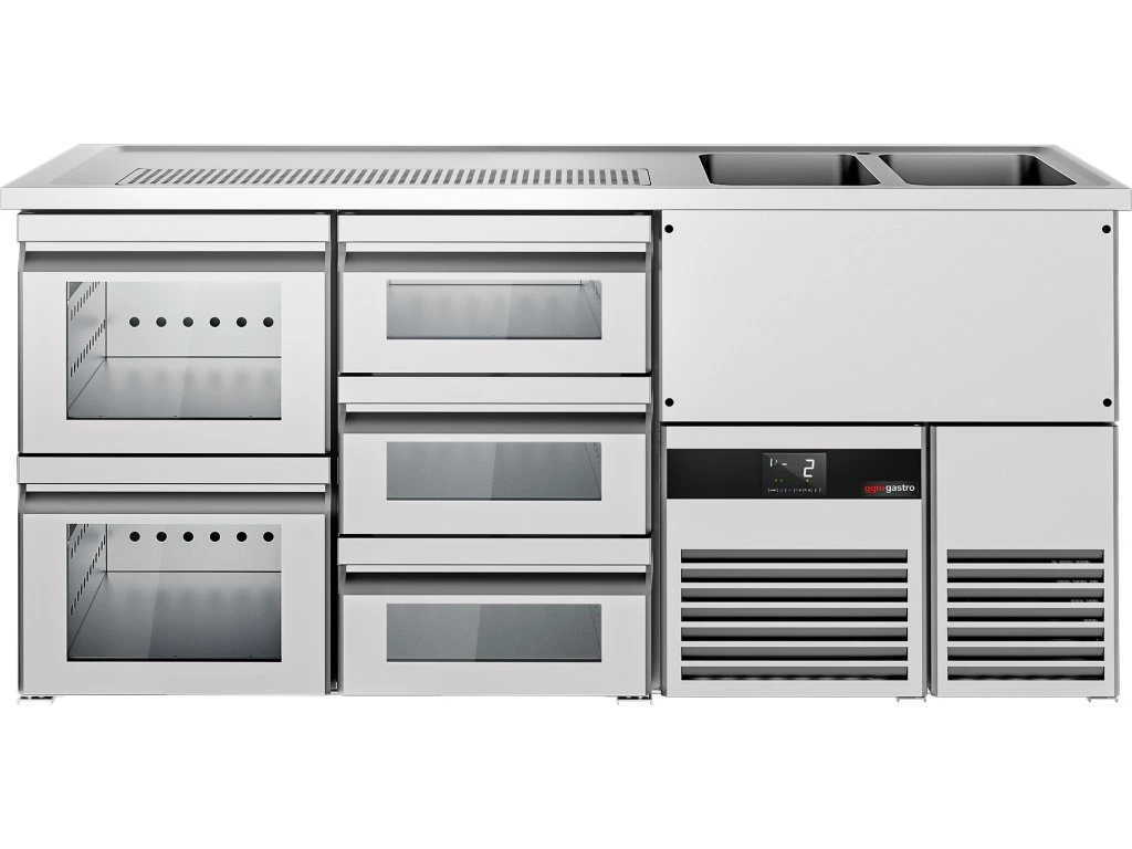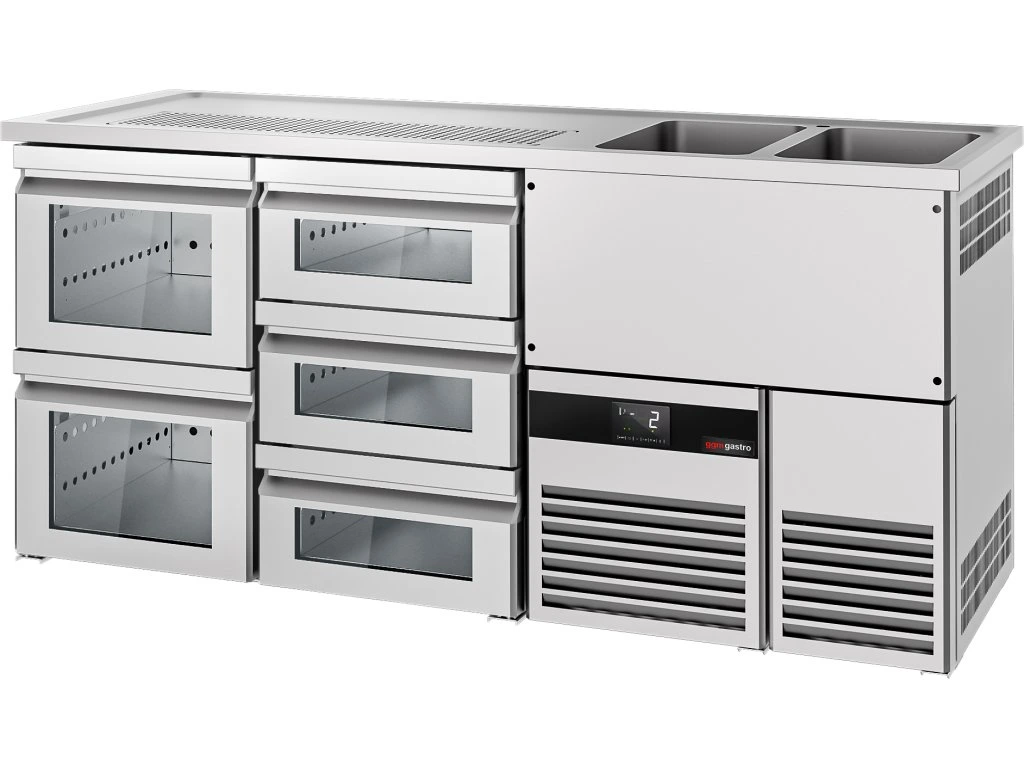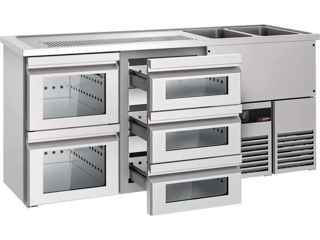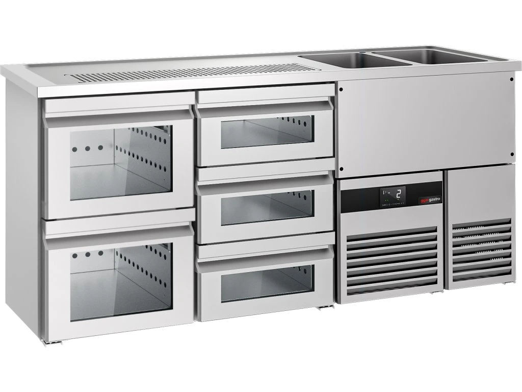 Barowy stół chłodniczy PREMIUM - 1950x700mm - 5 szklanych szuflad