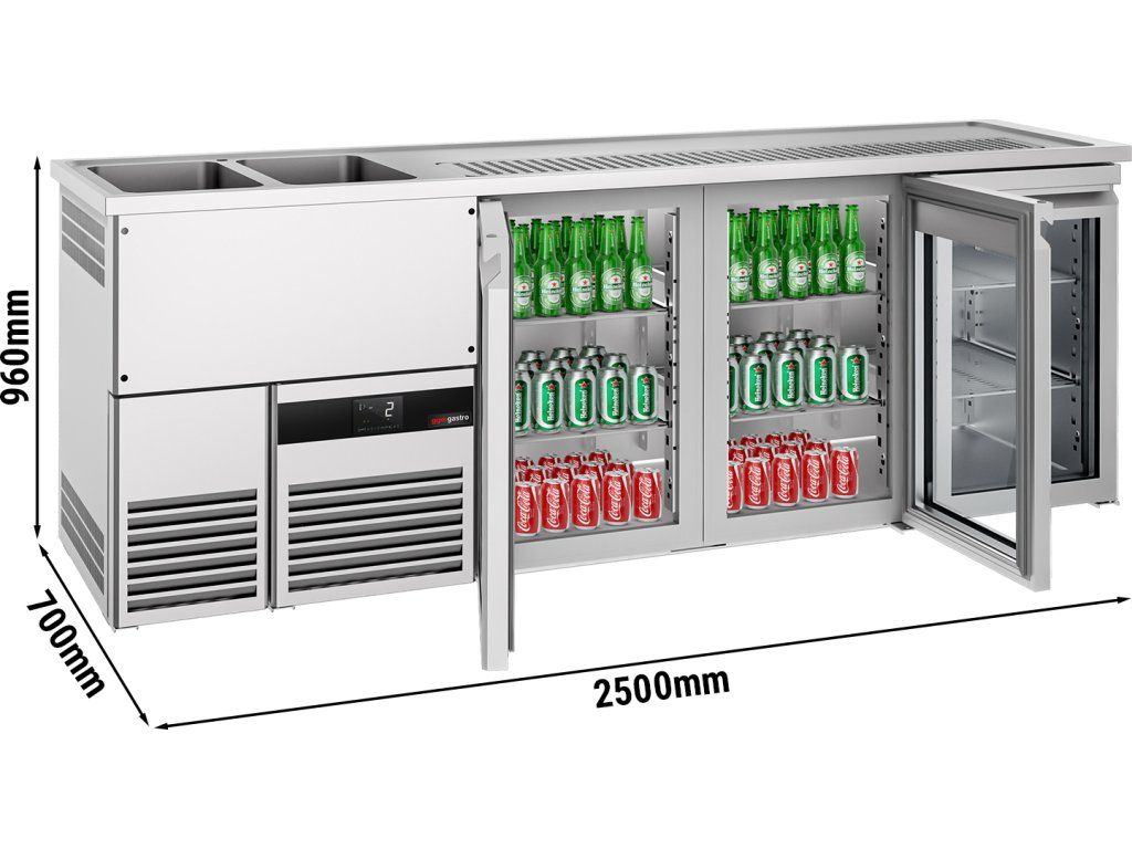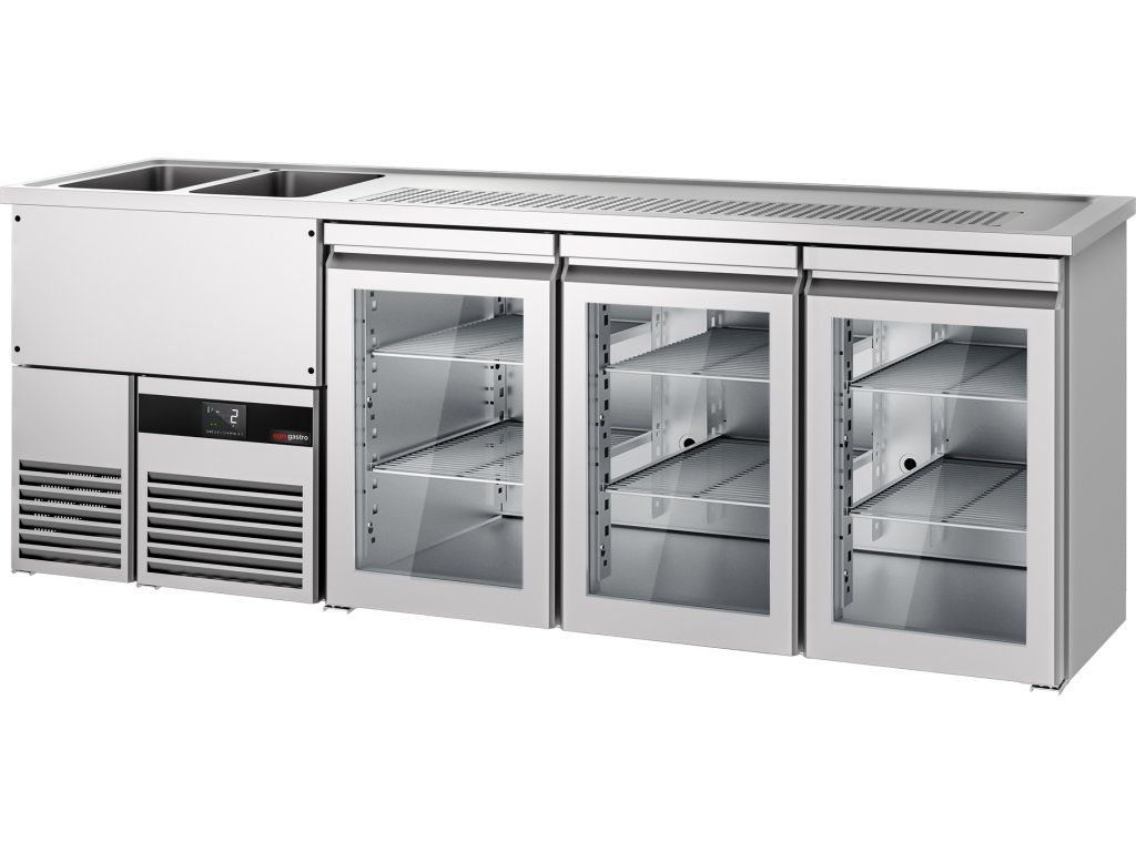 Barowy stół chłodniczy PREMIUM - 2500x700mm - 3 szklane drzwi