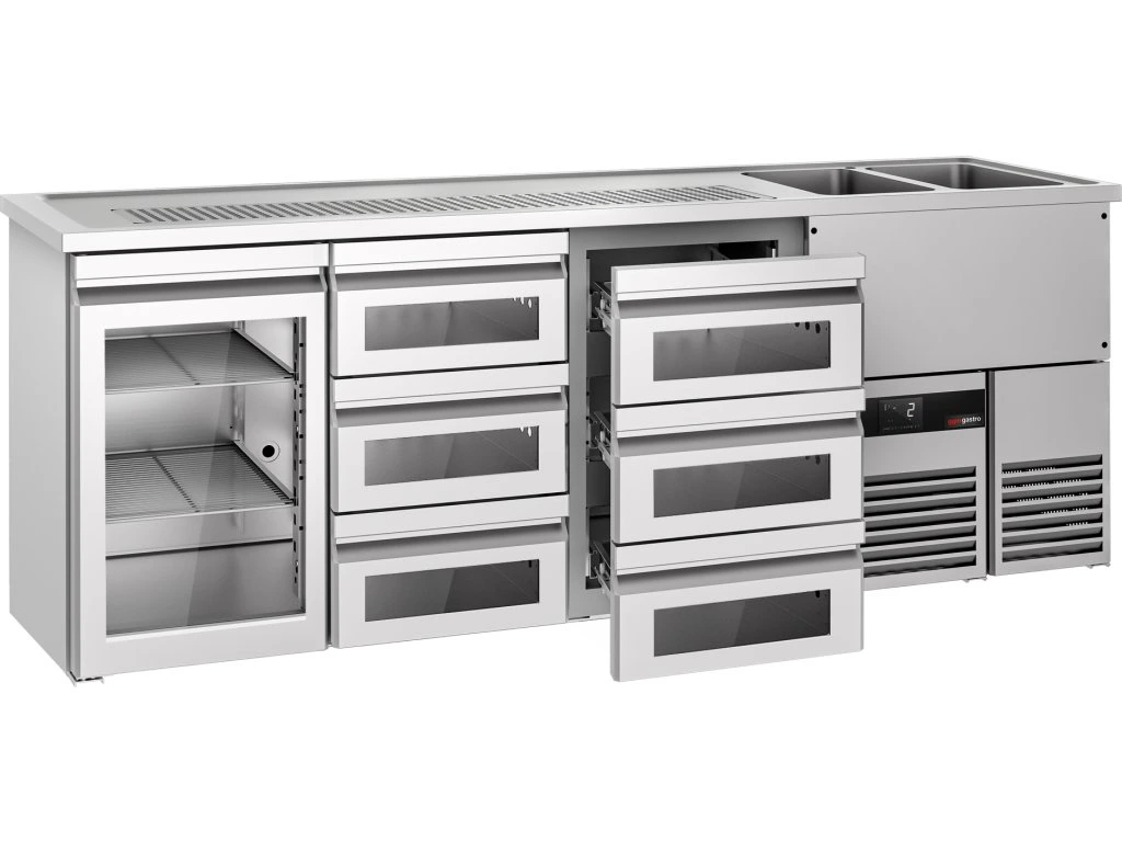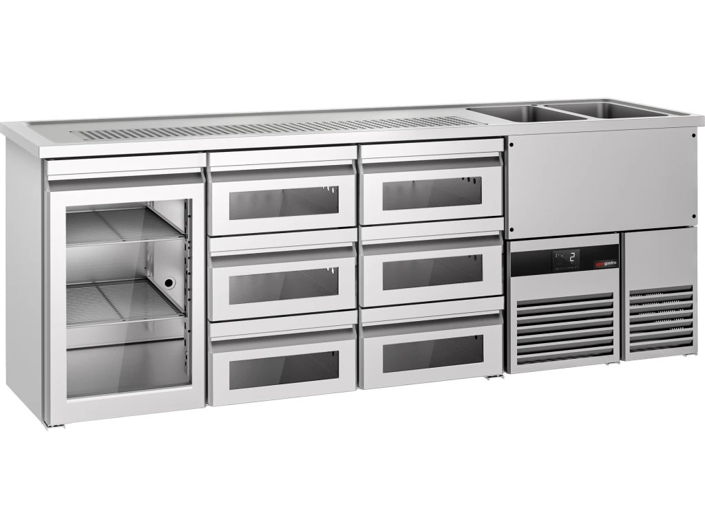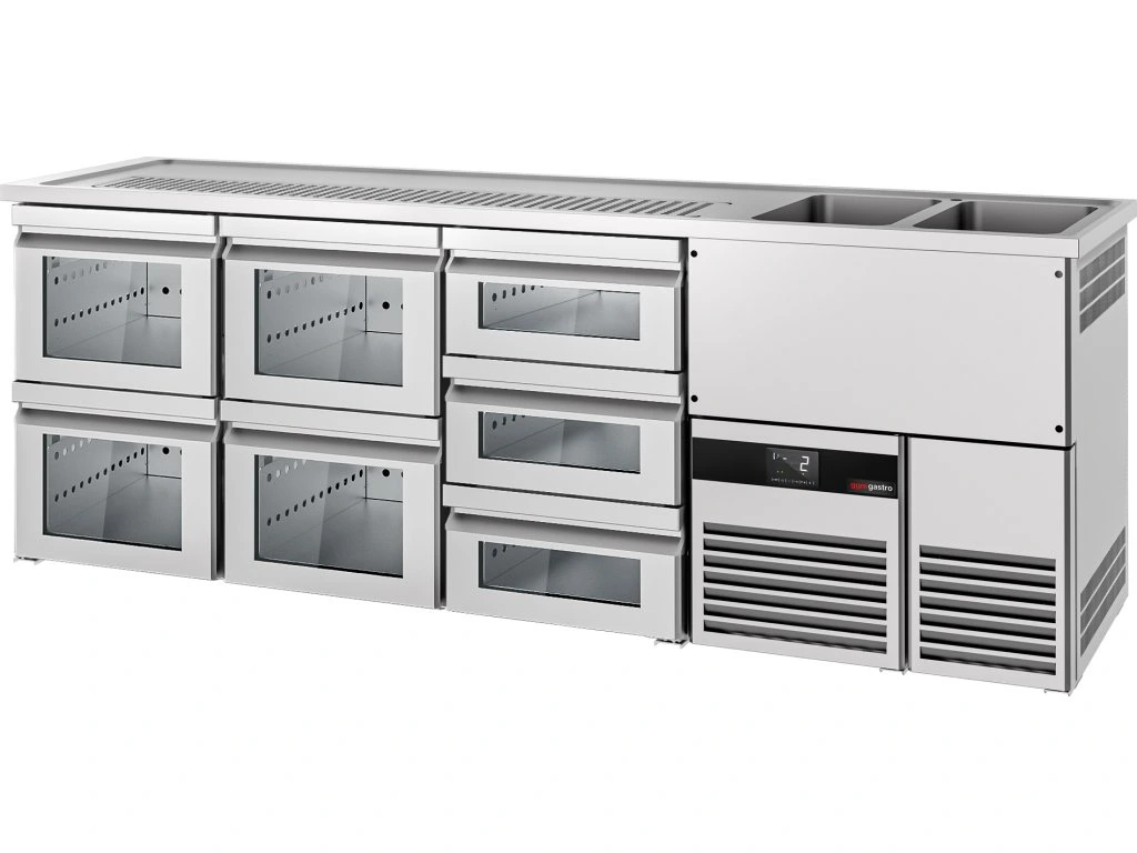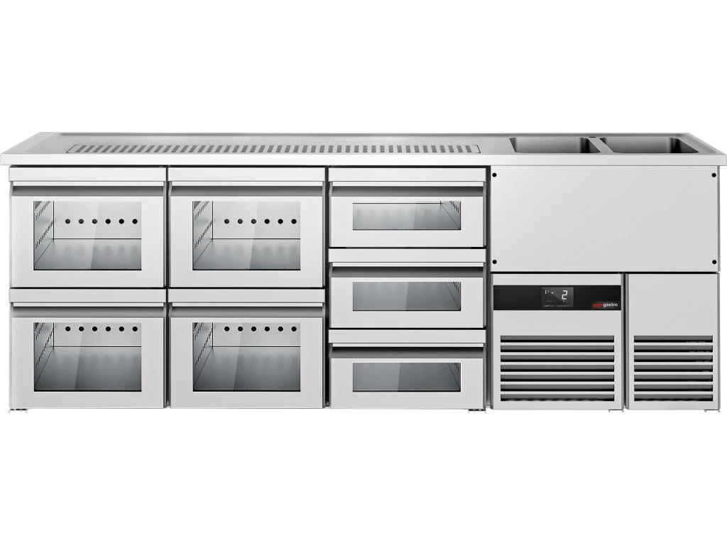 Barowy stół chłodniczy PREMIUM - 2500x700mm - 7 szklanych szuflad