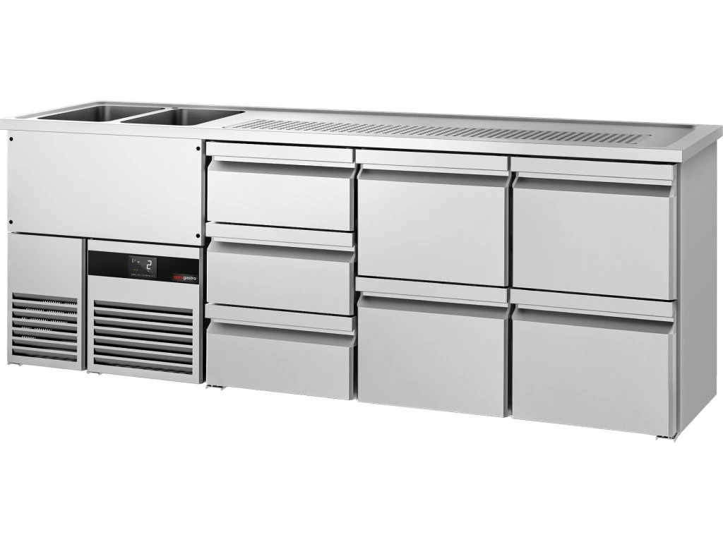 Barowy stół chłodniczy PREMIUM - 2500x700mm - 7 szuflad