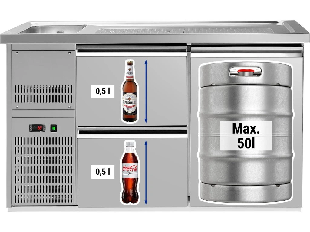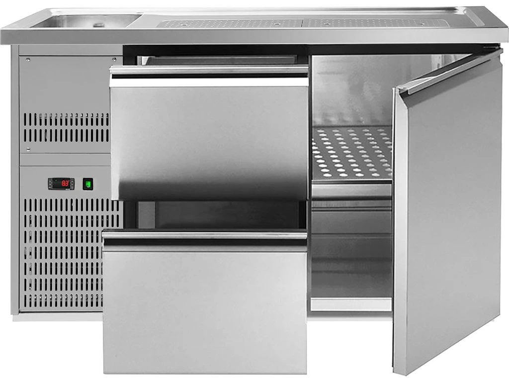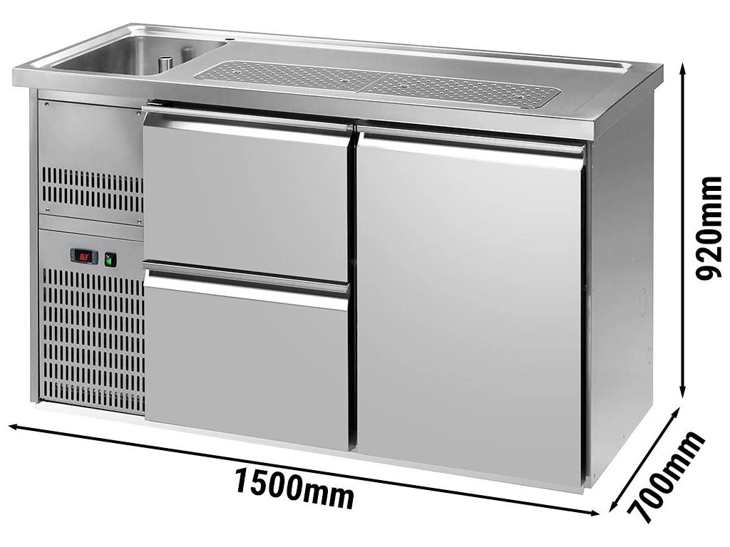 Barowy stół chłodniczy Premium PLUS - 1550x700 mm - 1 drzwi & 2 szuflady