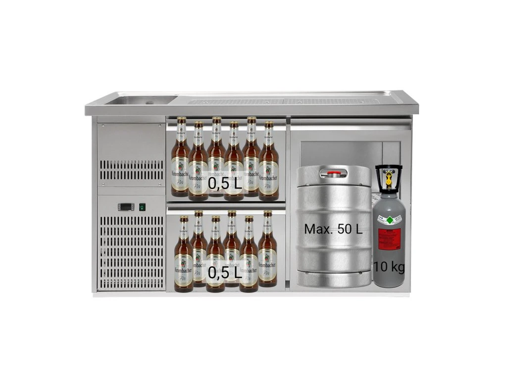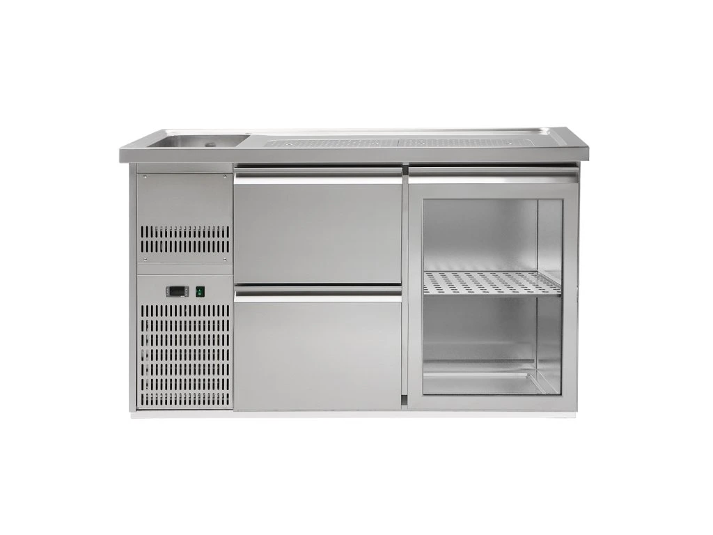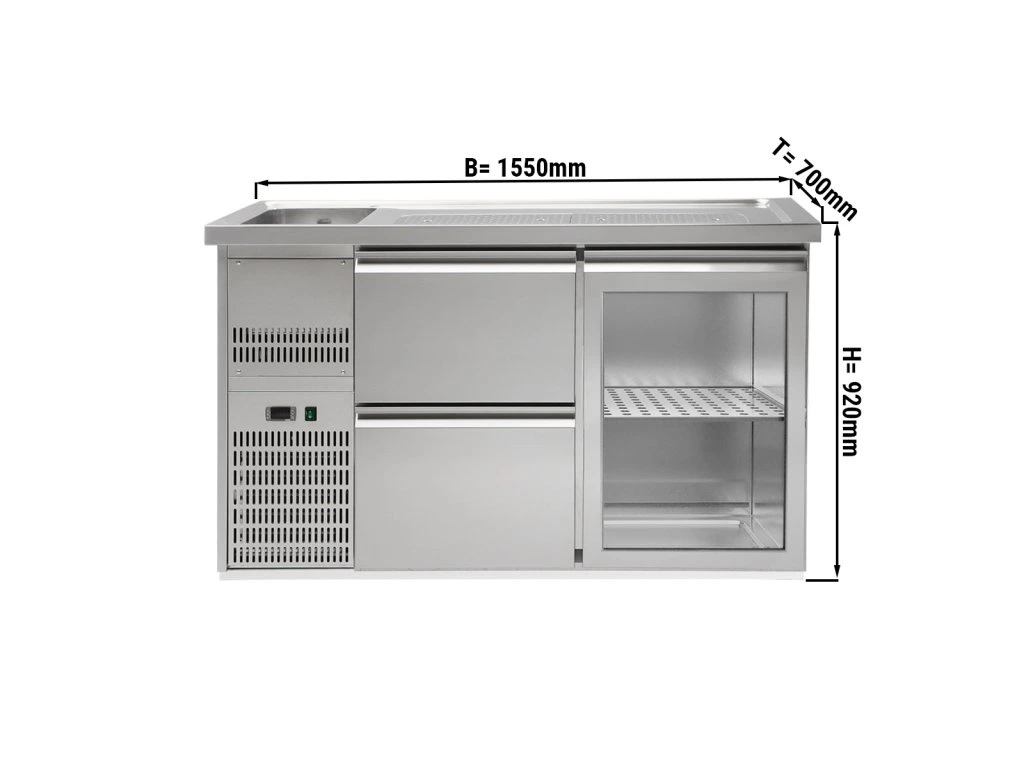 Barowy stół chłodniczy PREMIUM PLUS - 1550x700 mm - 1 szklane drzwi & 2 szuflady