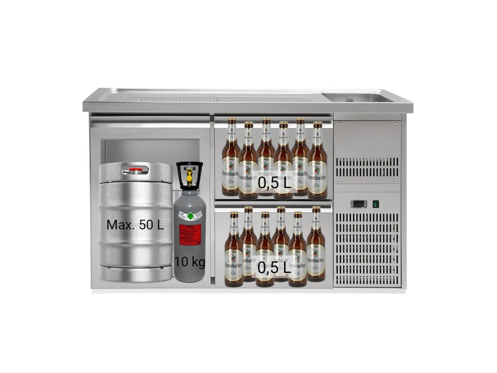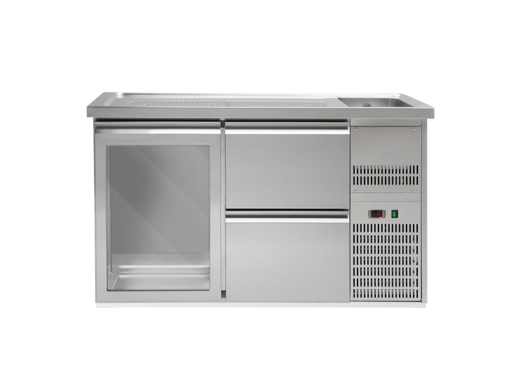 Barowy stół chłodniczy PREMIUM PLUS - 1550x700 mm - 1 szklane drzwi & 2 szuflady