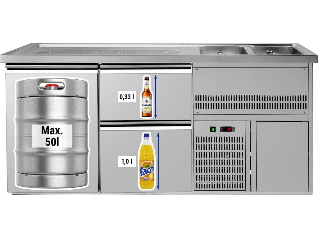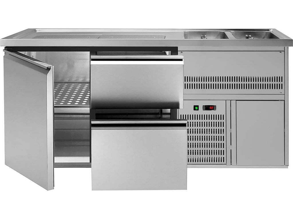 Barowy stół chłodniczy PREMIUM PLUS - 1950x700 mm - 1 drzwi & 2 szuflady