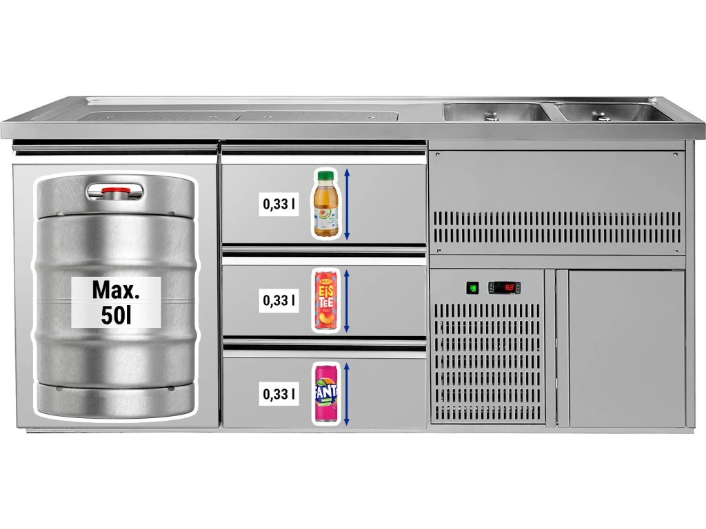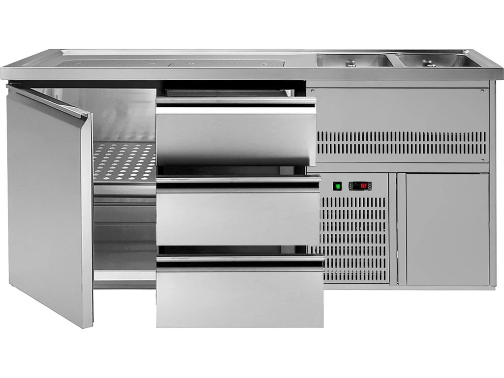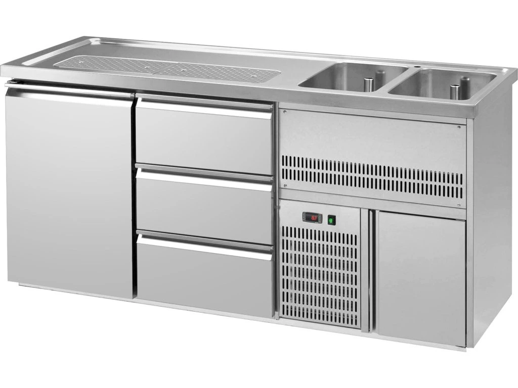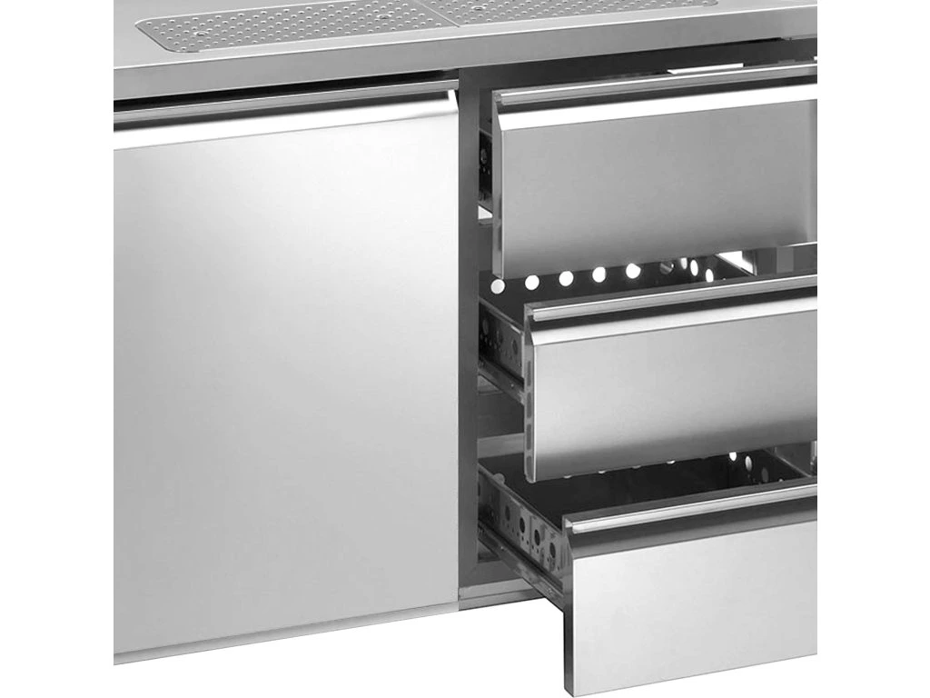 Barowy stół chłodniczy Premium PLUS - 1950x700 mm - 1 drzwi & 3 szuflady