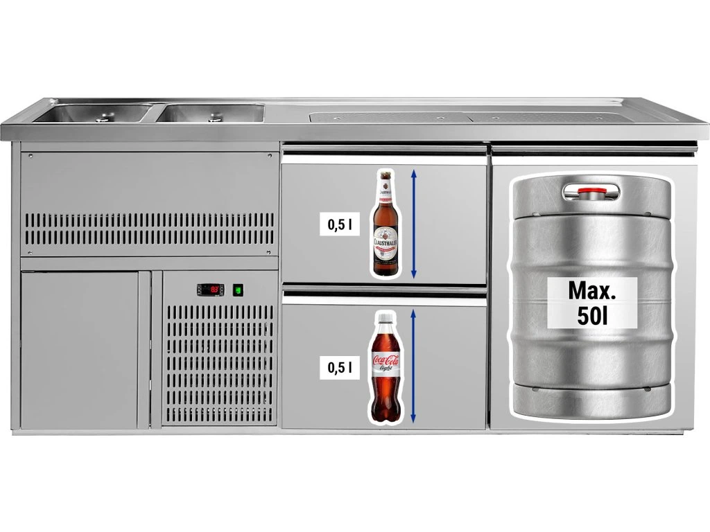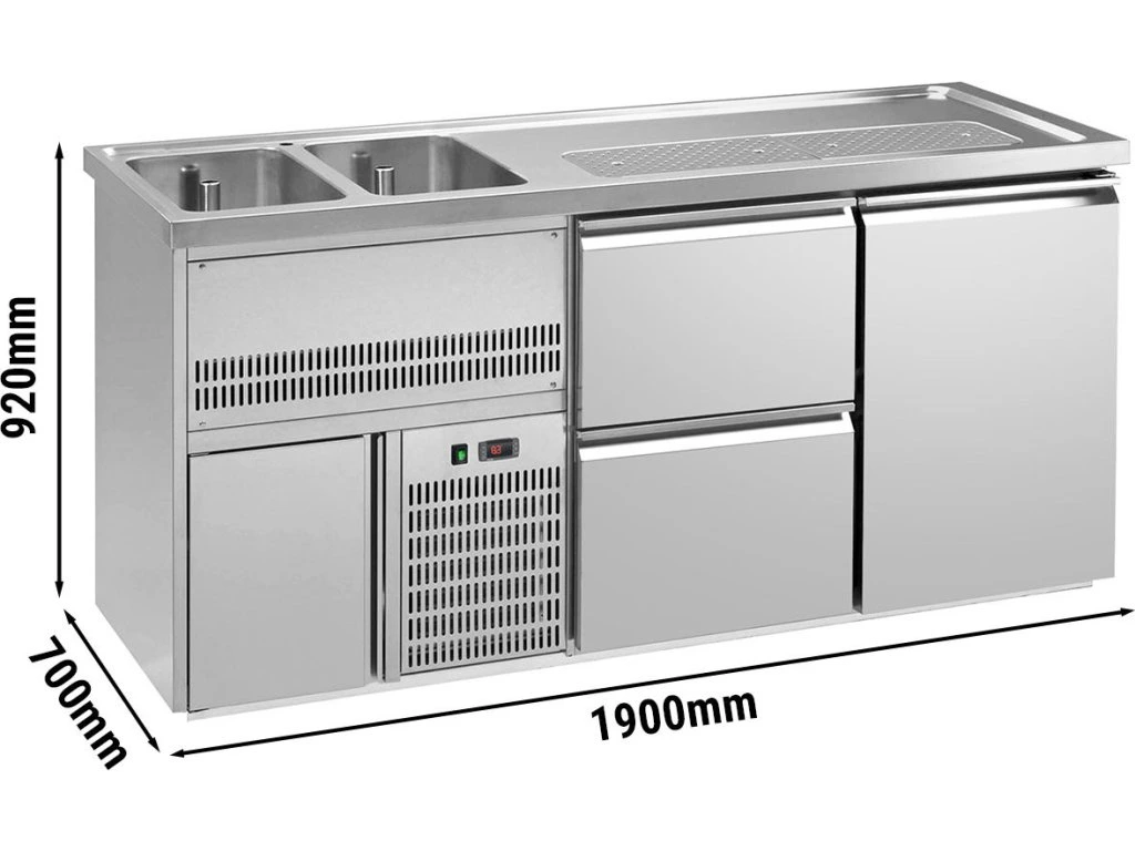 Barowy stół chłodniczy Premium PLUS - 1950x700mm - 1 drzwi & 2 szuflady