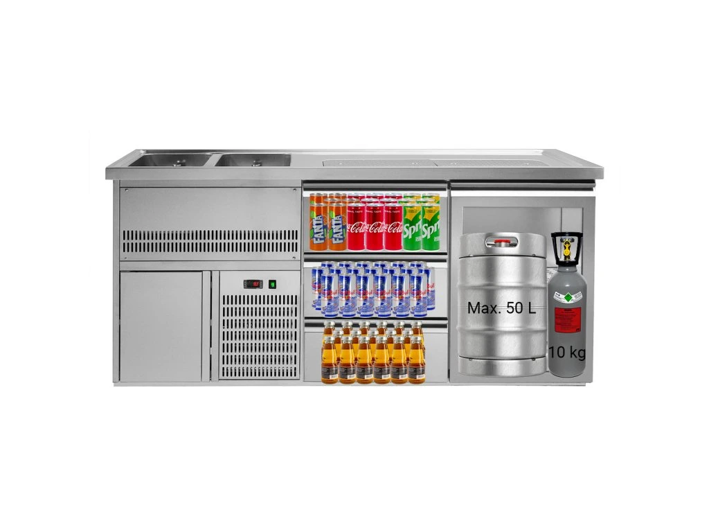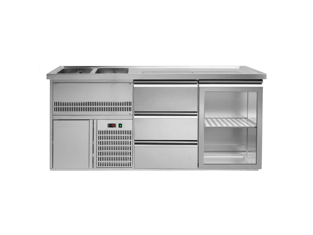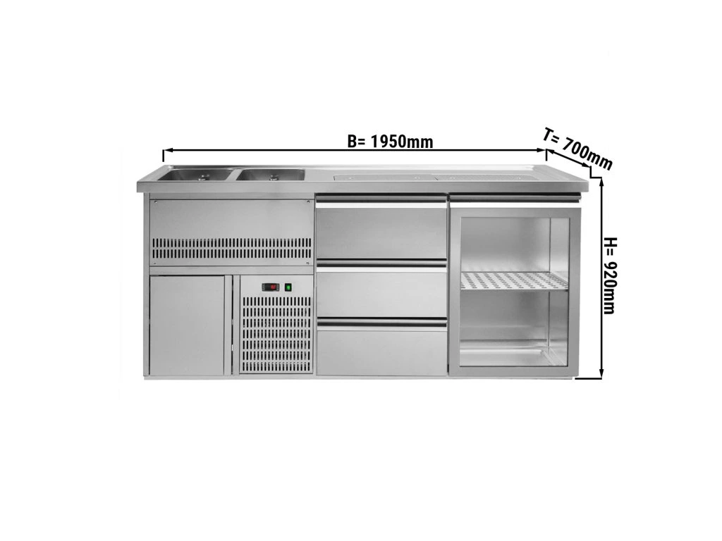 Barowy stół chłodniczy PREMIUM PLUS - 1950x700mm - 1 szklane drzwi & 3 szuflady