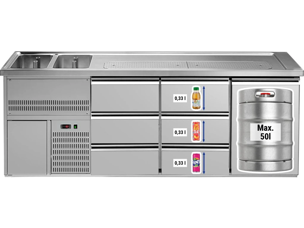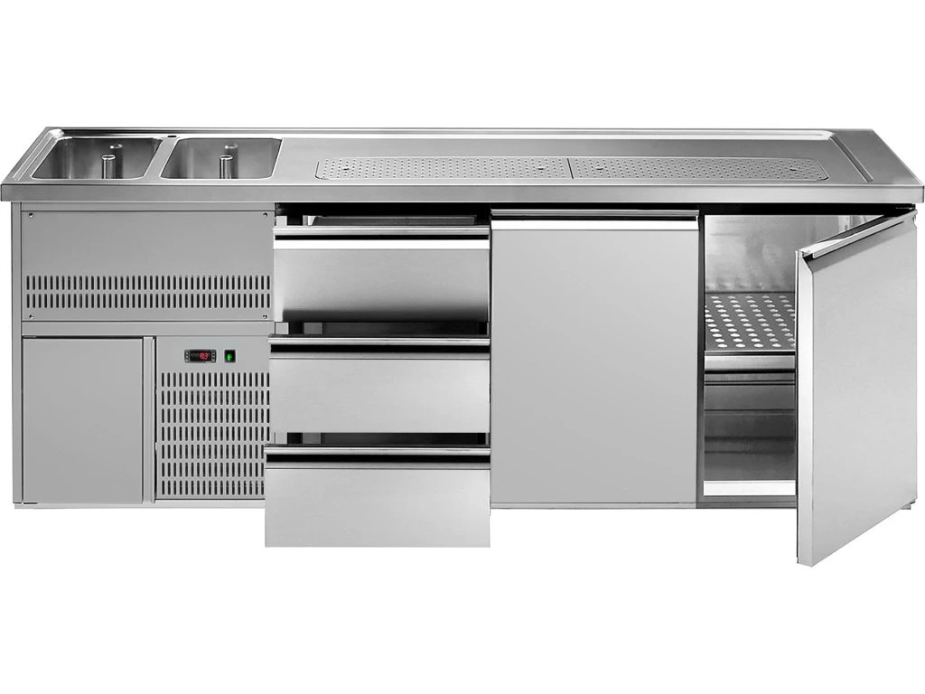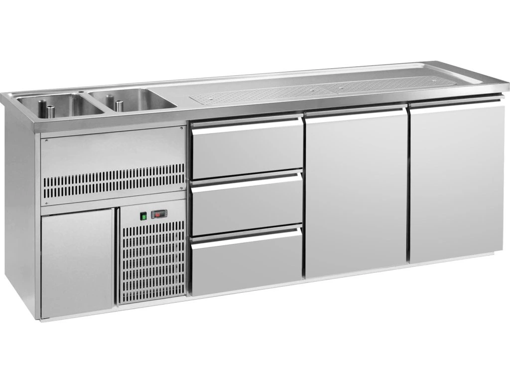 Barowy stół chłodniczy PREMIUM PLUS - 2500x700 mm - 2 drzwi & 3 szuflady