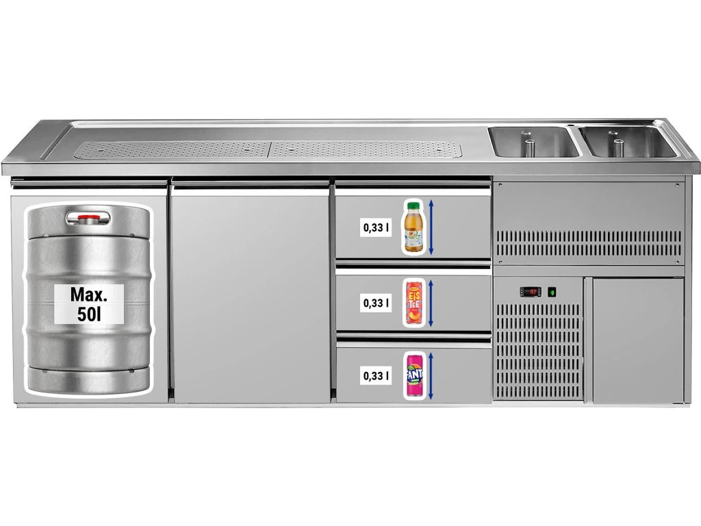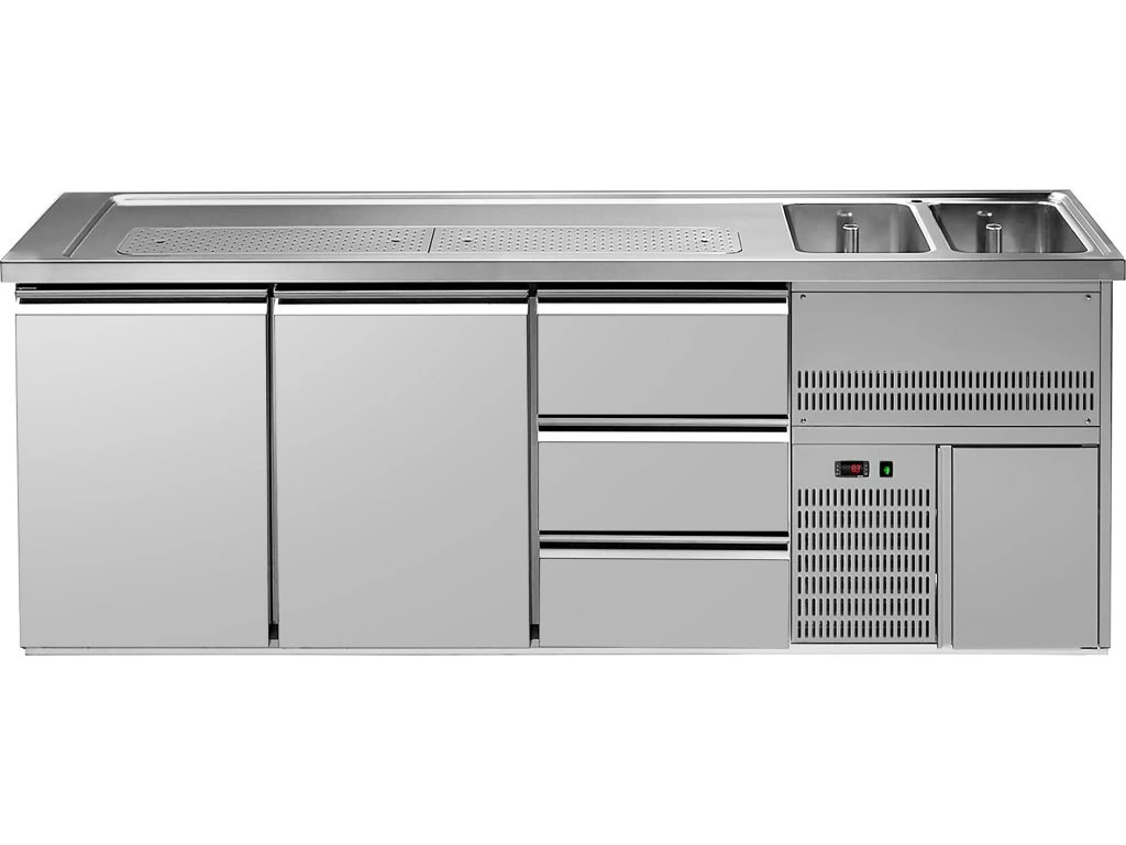 Barowy stół chłodniczy Premium PLUS - 2500x700 mm - 2 drzwi & 3 szuflady