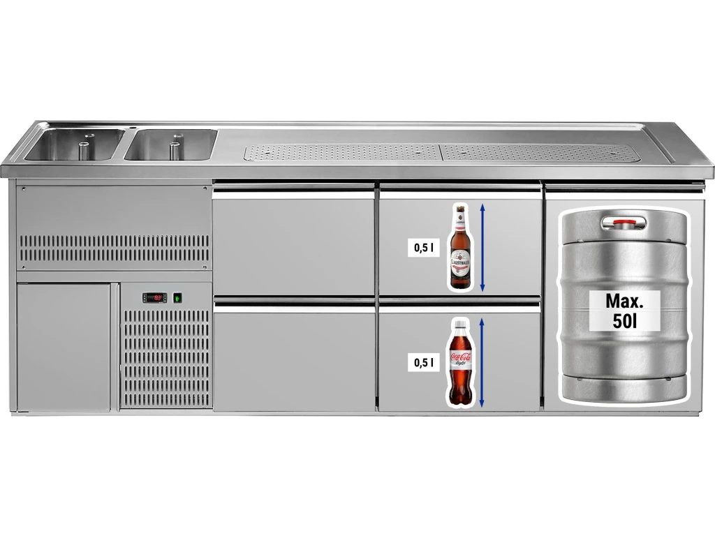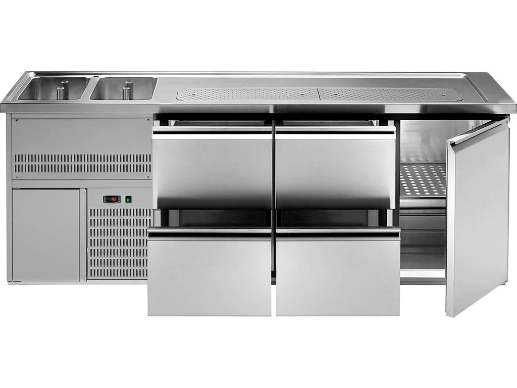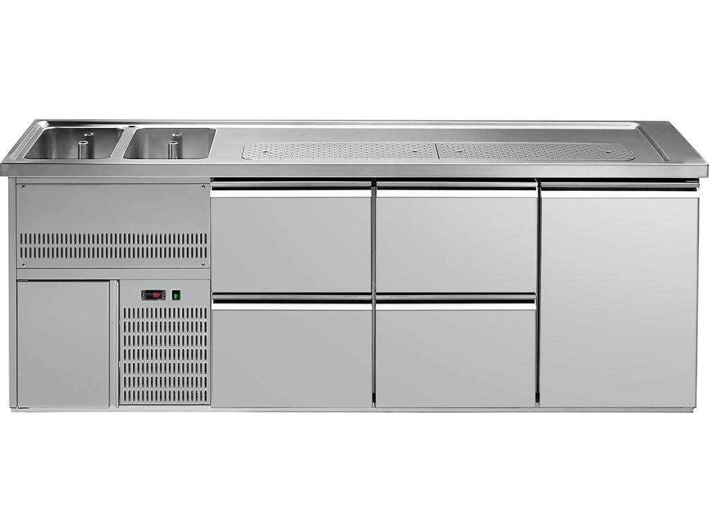Barowy stół chłodniczy Premium PLUS - 2500x700mm - 1 drzwi & 4 szuflady